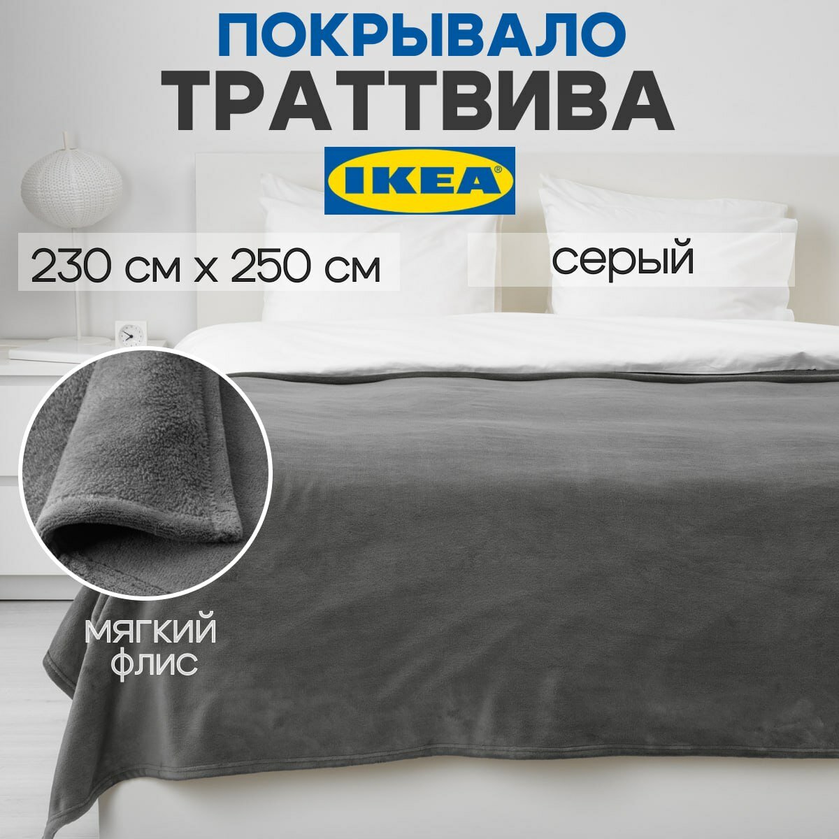 Плед IKEA "TRATTVIVA", флисовый, 2-спальный, двухсторонний, 230x250см, серый интересное: