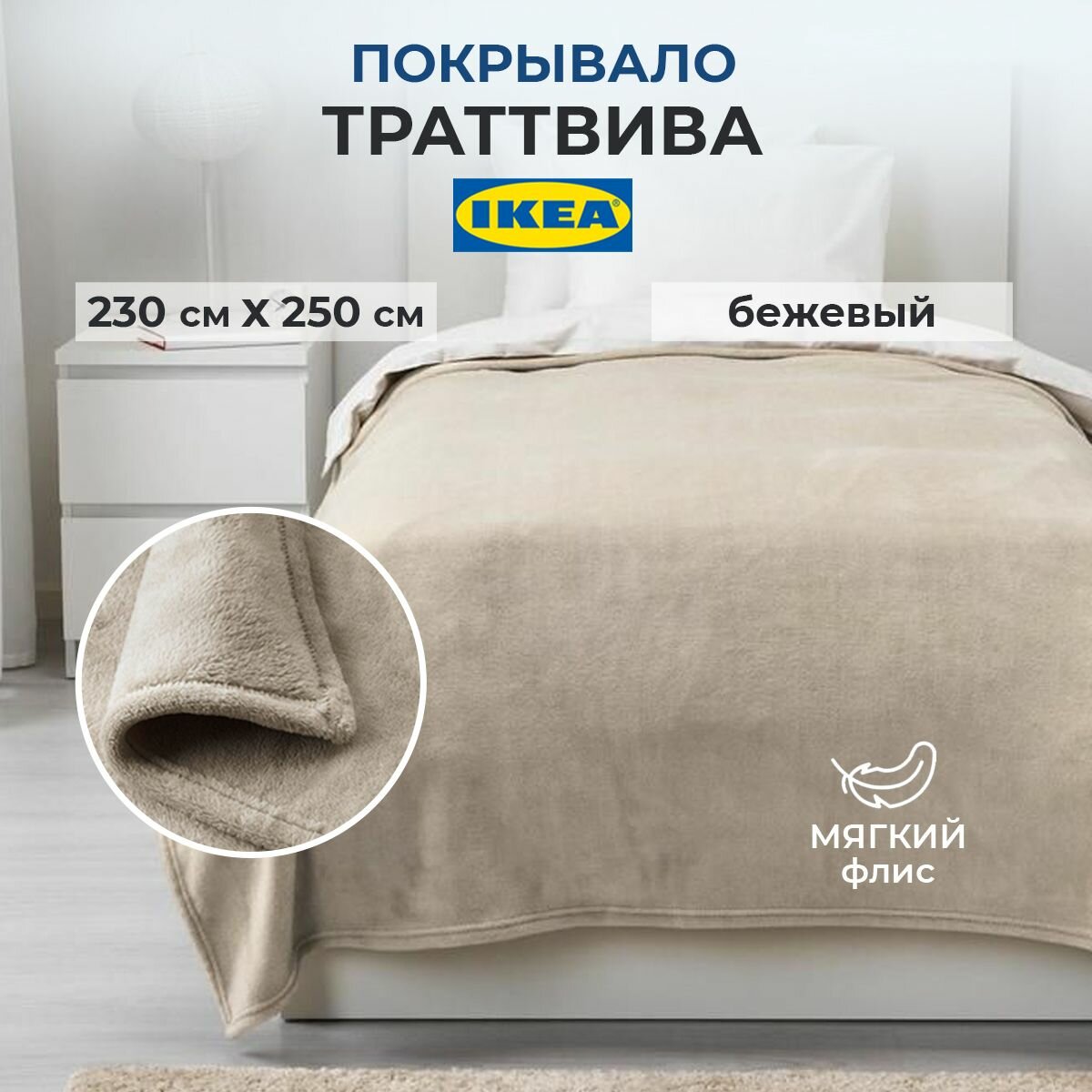 Плед IKEA "TRATTVIVA", флисовый, 2 спальный, двусторонний, бежевый, 230 см x 250 см интересное: