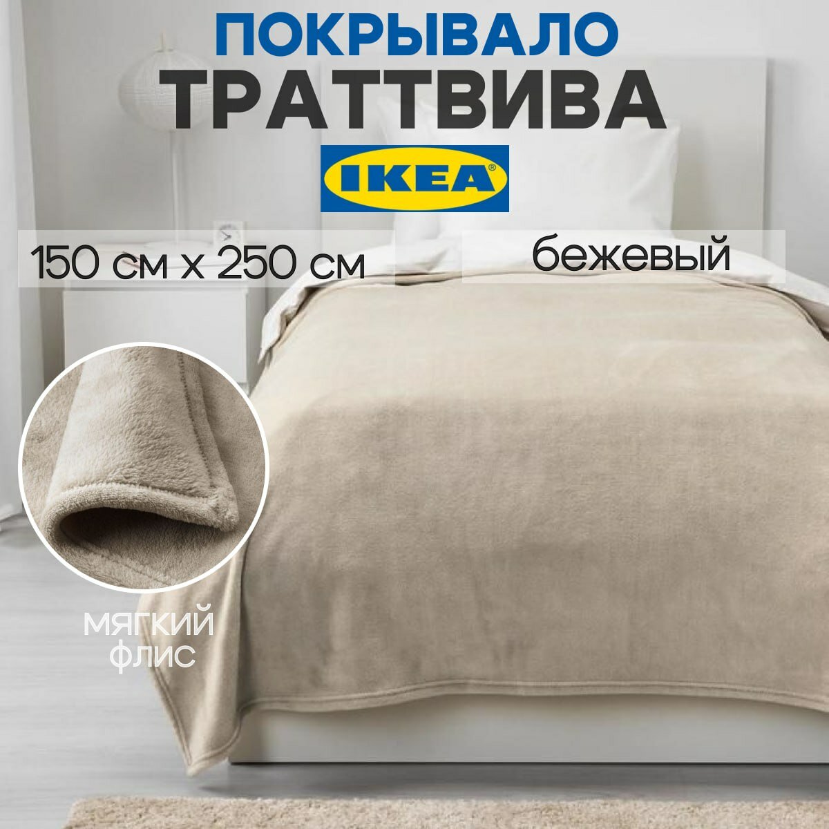 Плед IKEA "TRATTVIVA", флисовый, 2 спальный, двусторонний, бежевый, 230 см x 250 см