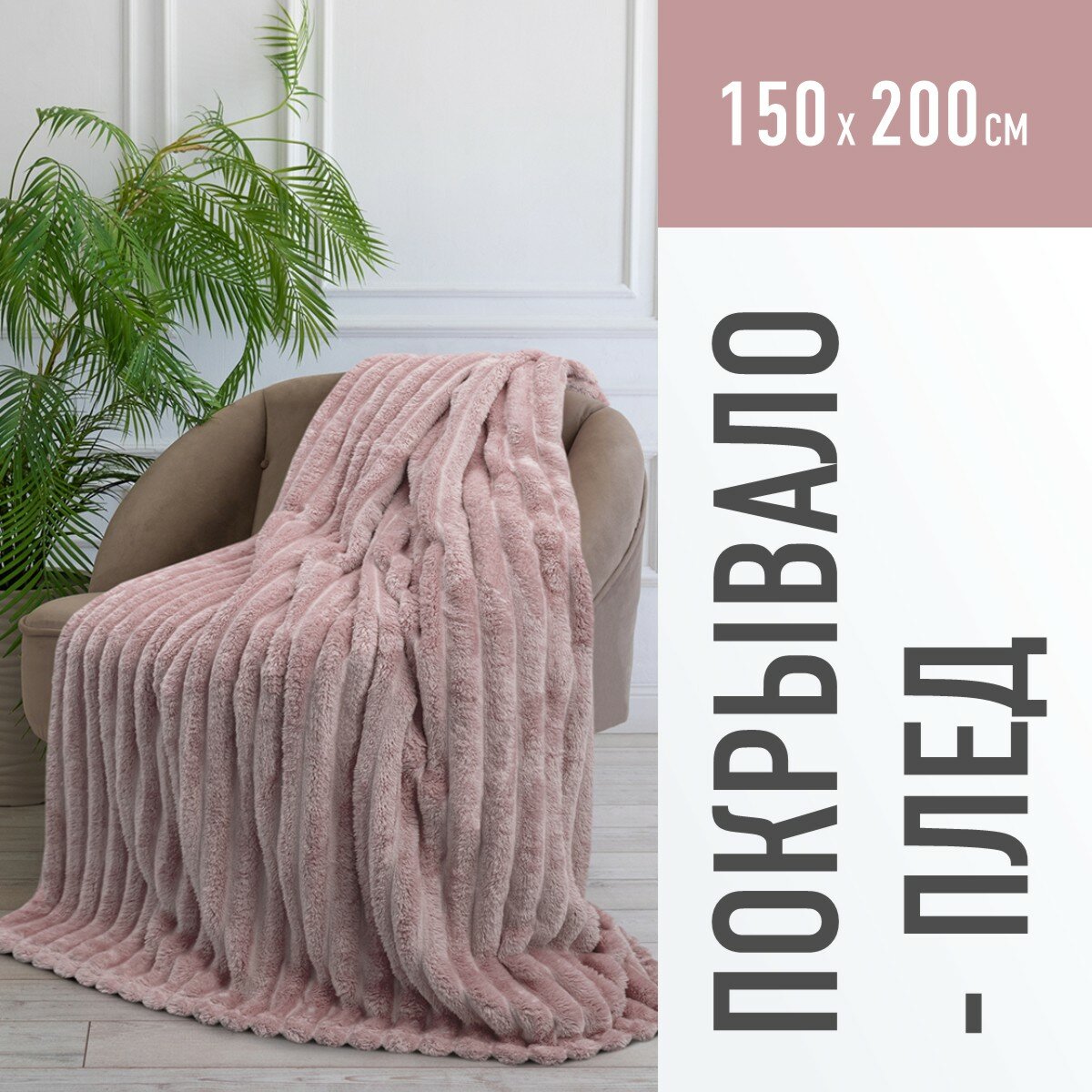 Купить Плед Happy Family 150х200 см, плед - покрывало 1,5 спальное, плюшевый пушистый ворс велсофт Волна пудра