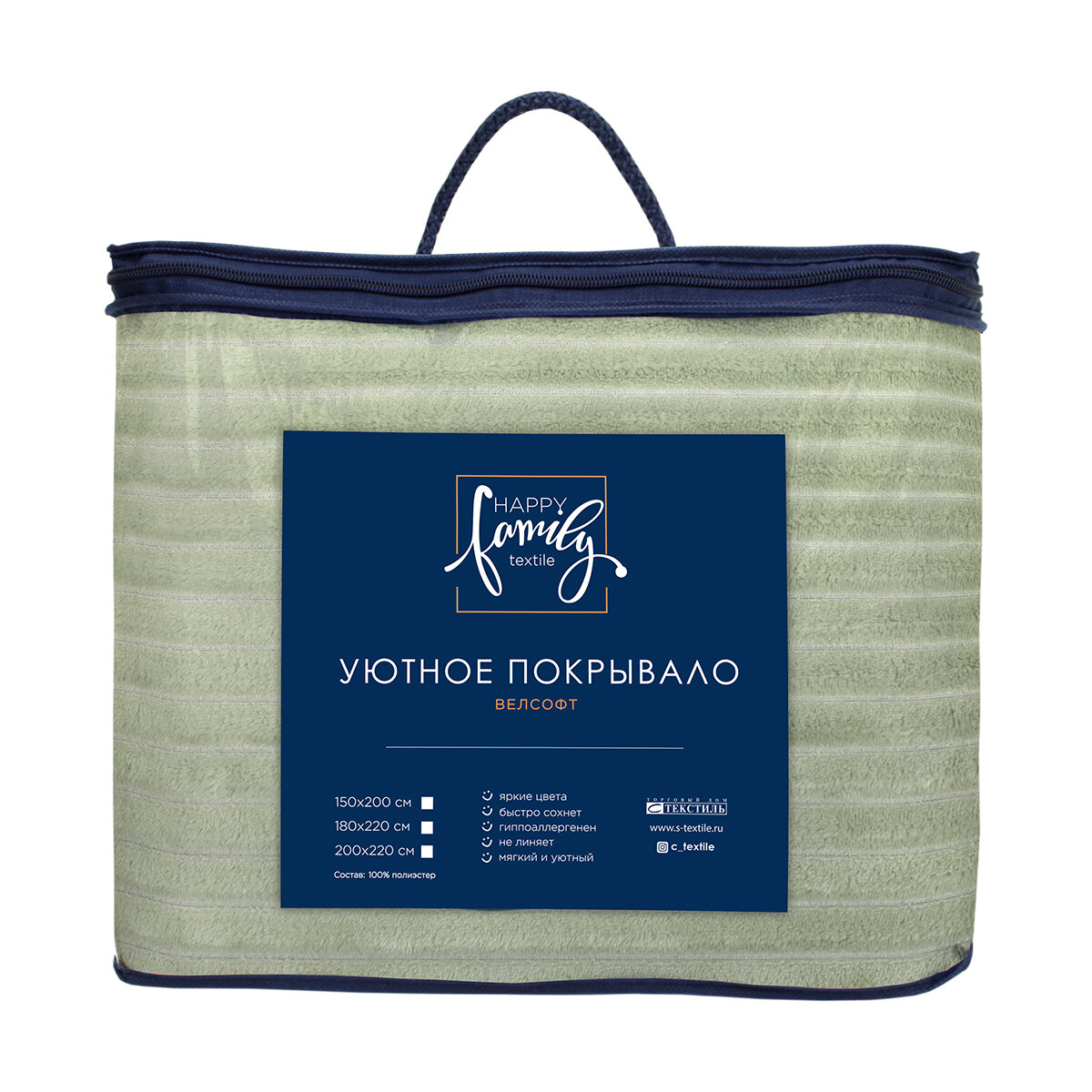 Плед евро 200х220 см, покрывало Happy Family велсофт Волна фисташковый/мягкий, теплый плед на кровать/кресло/подарок/ для дома/дачи/пикника / NEW 2024/