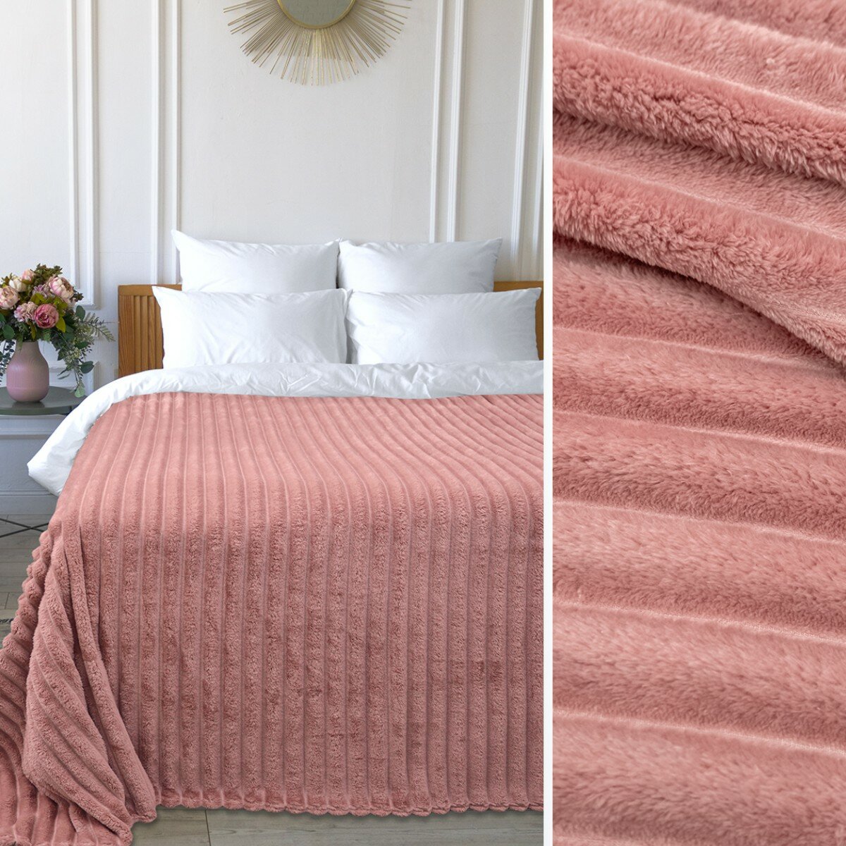 Плед Happy Family 150х200 см, плед - покрывало 1,5 спальное, плюшевый пушистый ворс велсофт Волна пудра