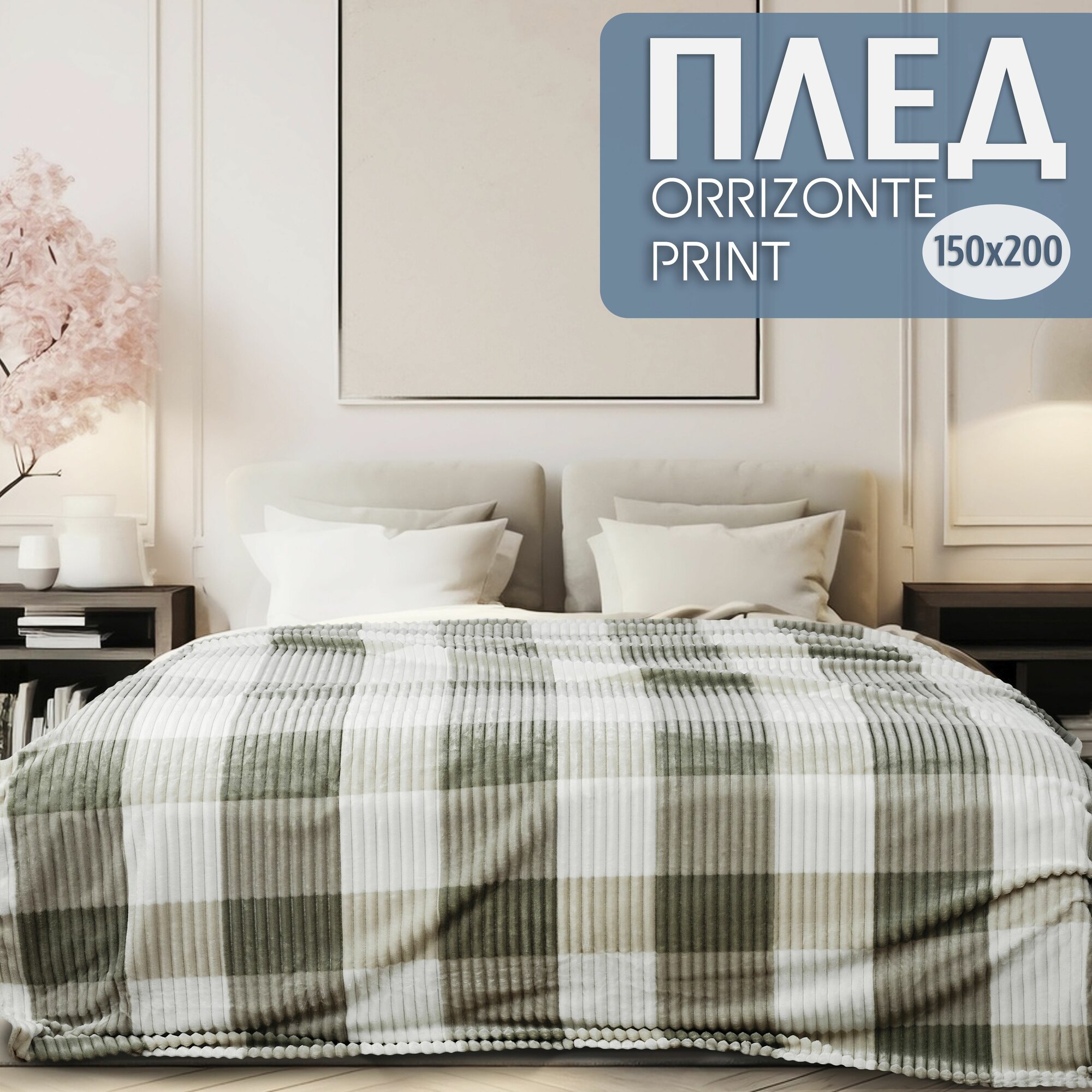 Плед 180х200 зеленый в клетку Cleo Orrizonte Print покрывало на кровать и диван пушистый велсофт