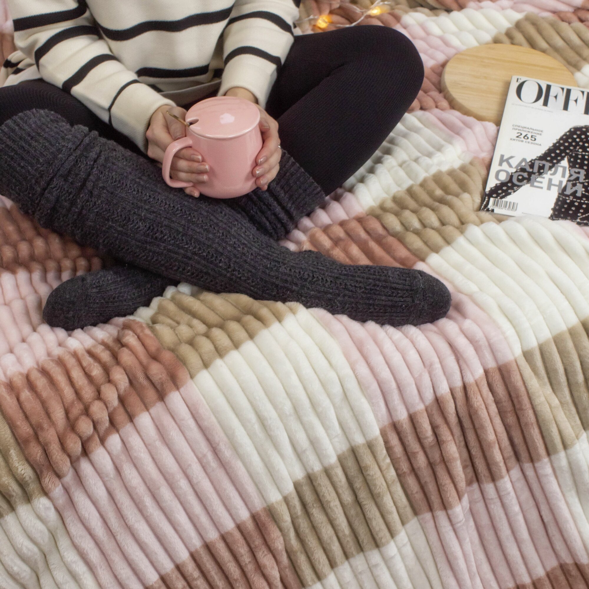 Плед 150х200 розовый в клетку Cleo Orrizonte Print покрывало на кровать и диван пушистый велсофт