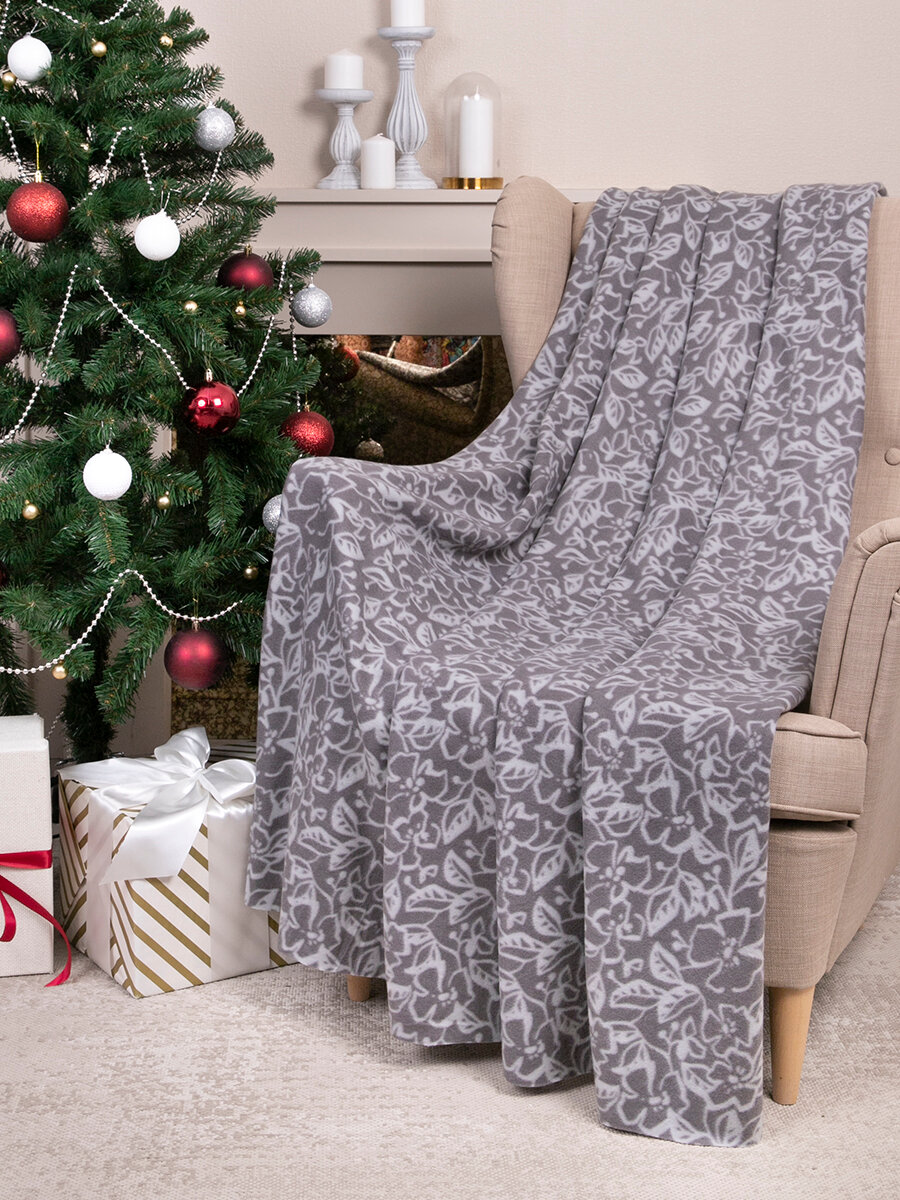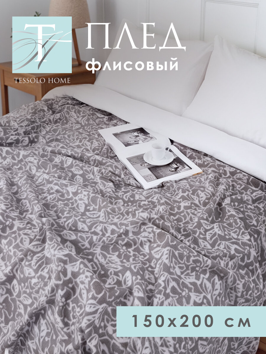 Купить Плед 150х200 флисовый на кровать мягкий, Tessolo Home, " Фиалки", серый