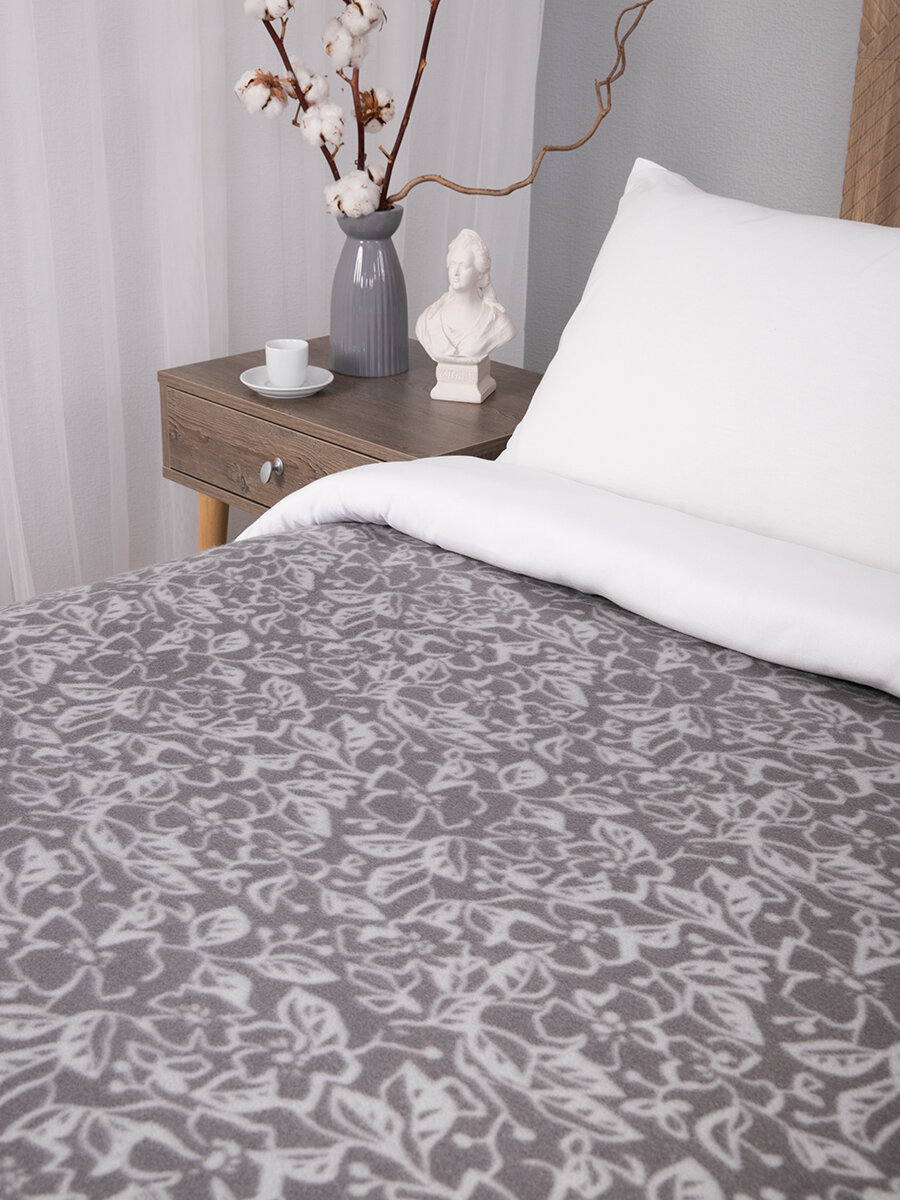 СохранитьПлед 150х200 флисовый на кровать мягкий, Tessolo Home, " Фиалки", серый интересное: