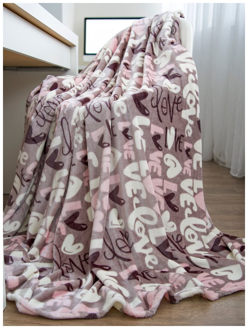 Плед 150х200 велсофт, ДизайнТекстиль, Love кофейный DP-24/150 интересное: