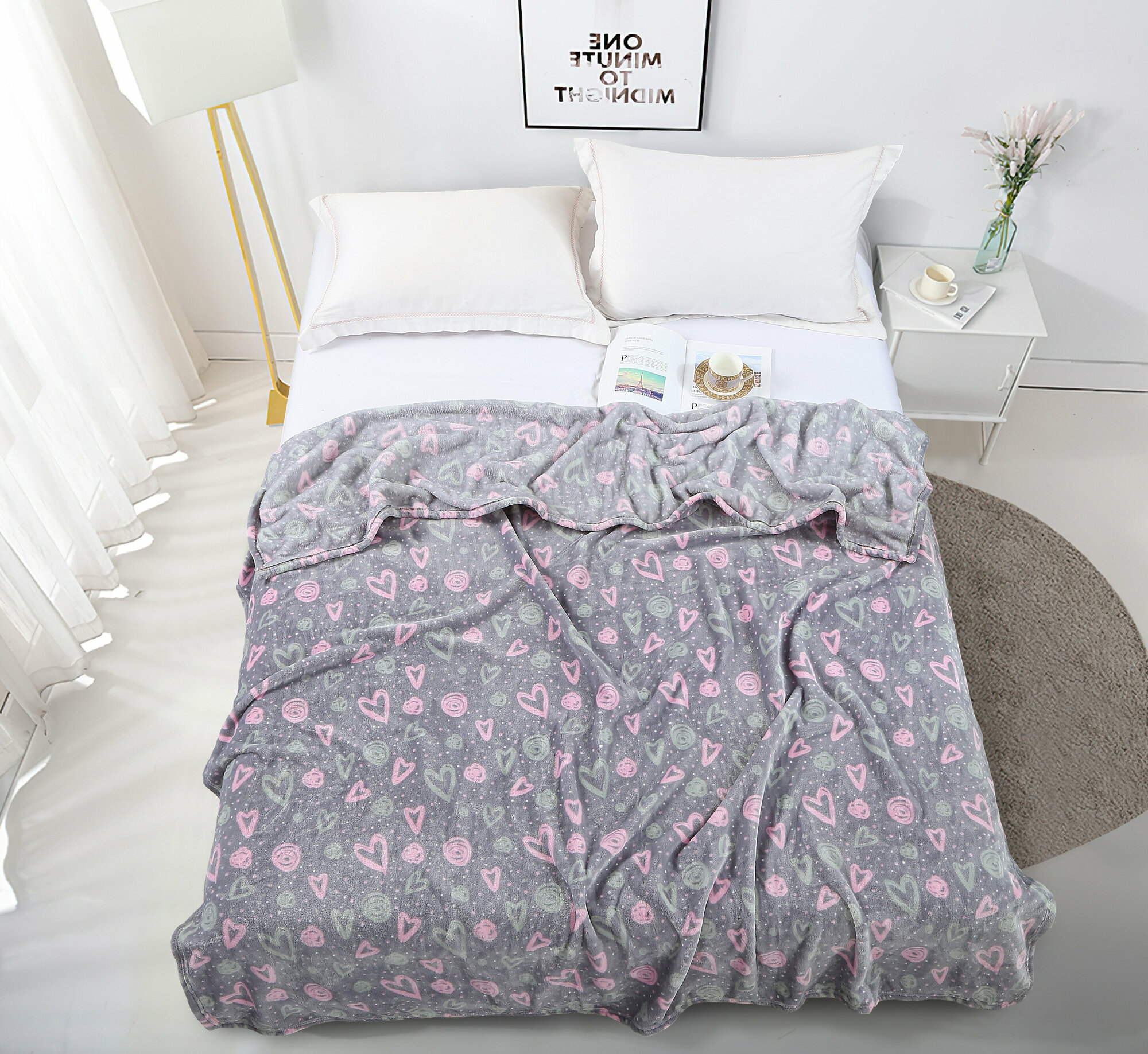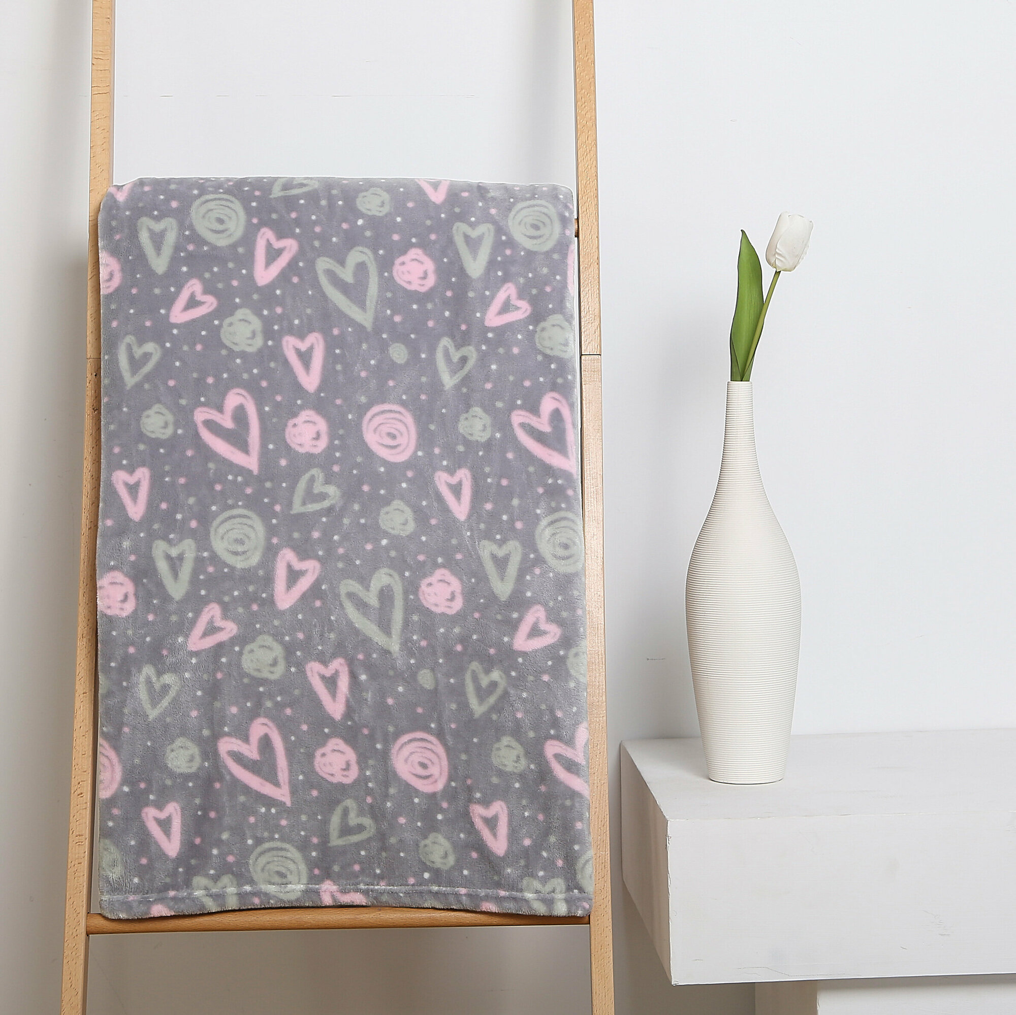 Купить Плед 180х200 двуспальный с сердечками, покрывало на кровать и диван Cleo California, пушистый с рисунком, велсофт