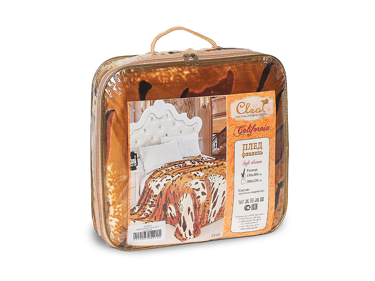 Плед 200х220 двуспальный евро Cleo California, покрывало на кровать и диван, пушистый с рисунком, велсофт