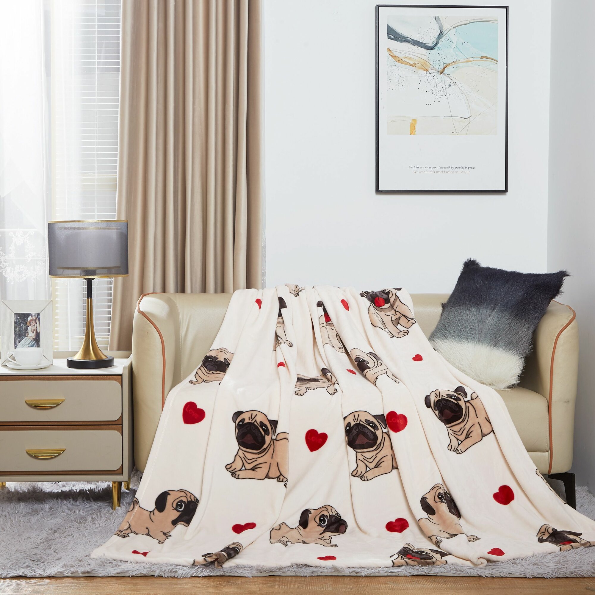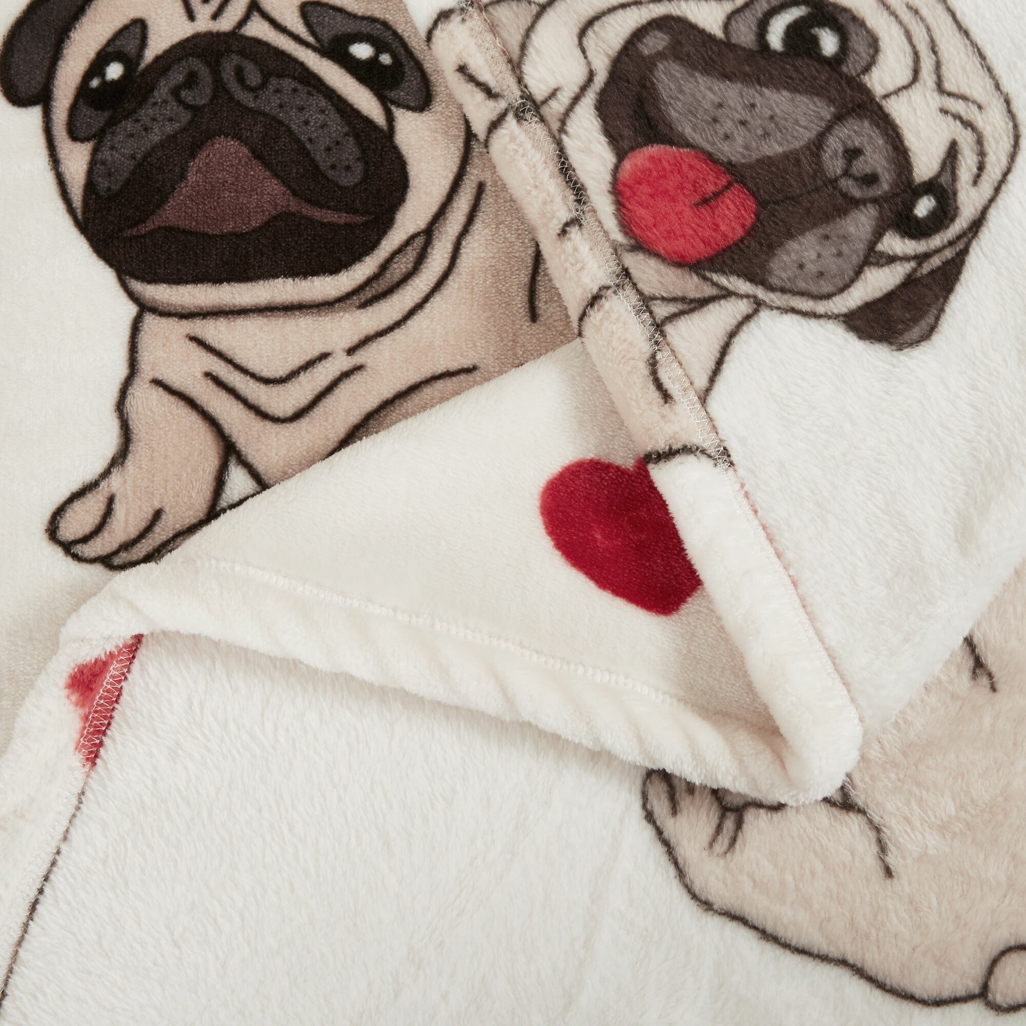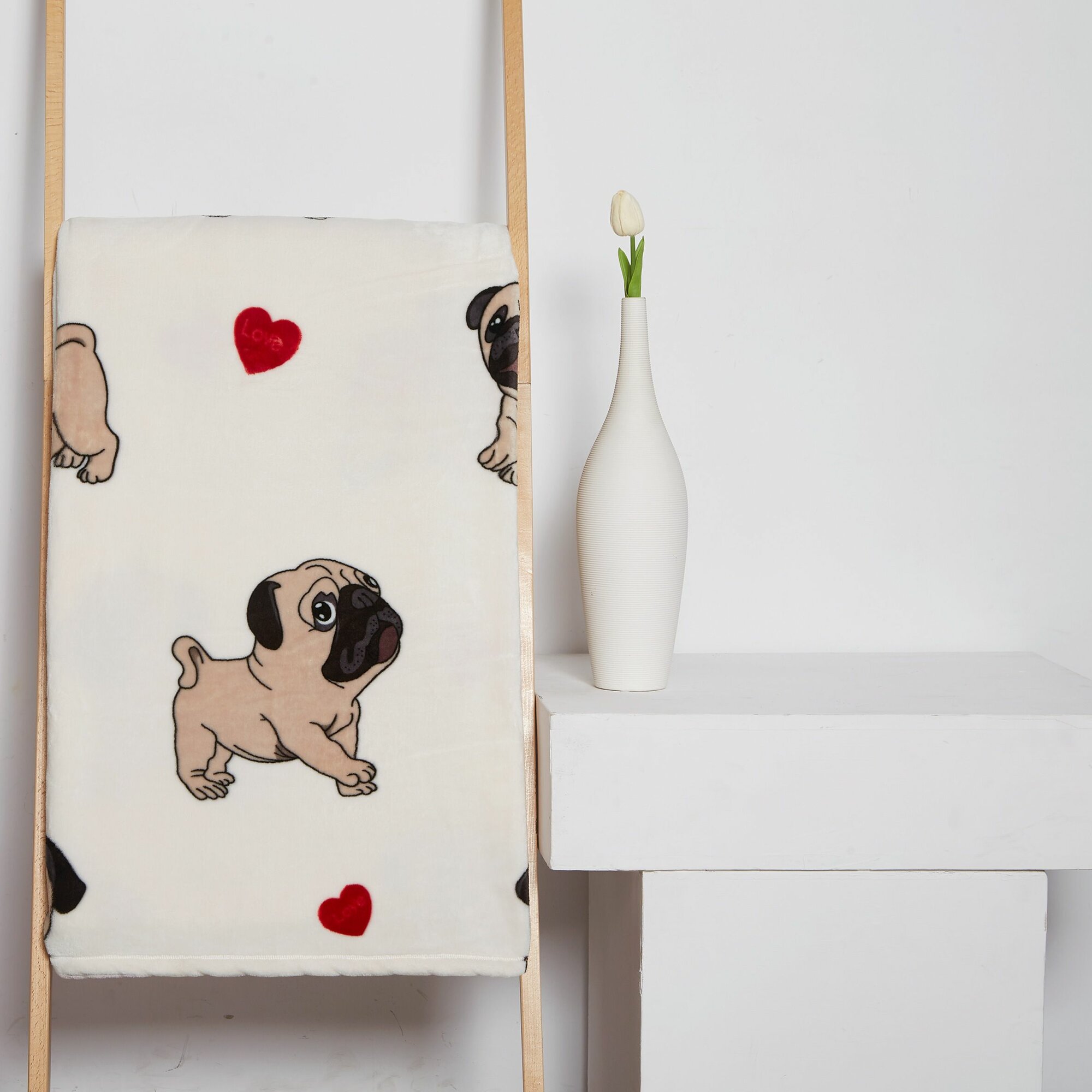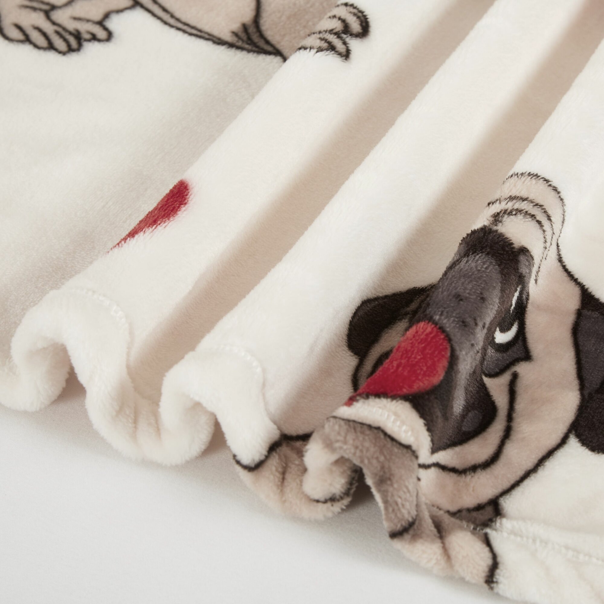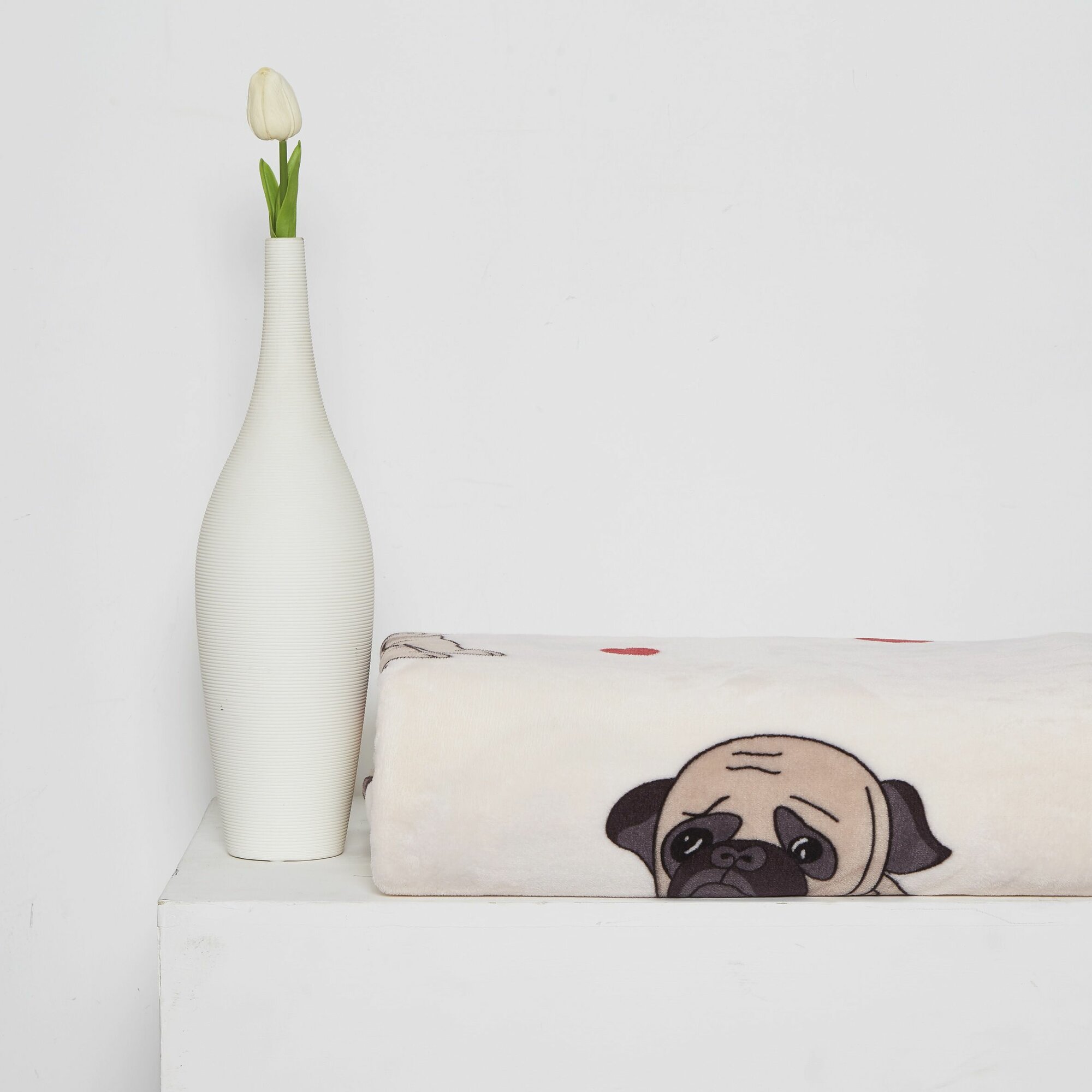 Купить Плед с мопсами 200x220 Cleo California покрывало на кровать и диван флисовый велсофт