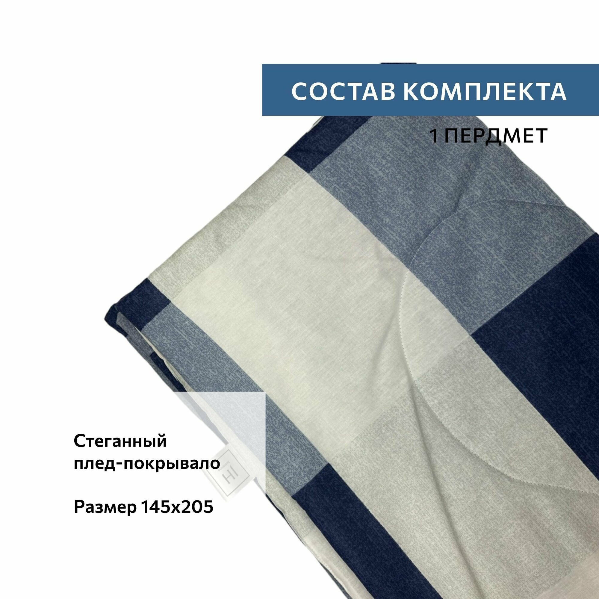 Плед-покрывало, покрывало стеганное для 145х205, Принт "Лен-клетка" интересное: