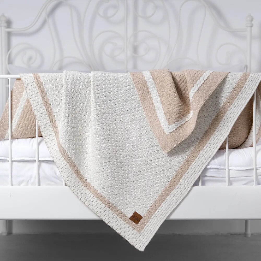 Плед-покрывало TG "ALINA", органический хлопок 100%, вязаный, бежевый, 140х180 см