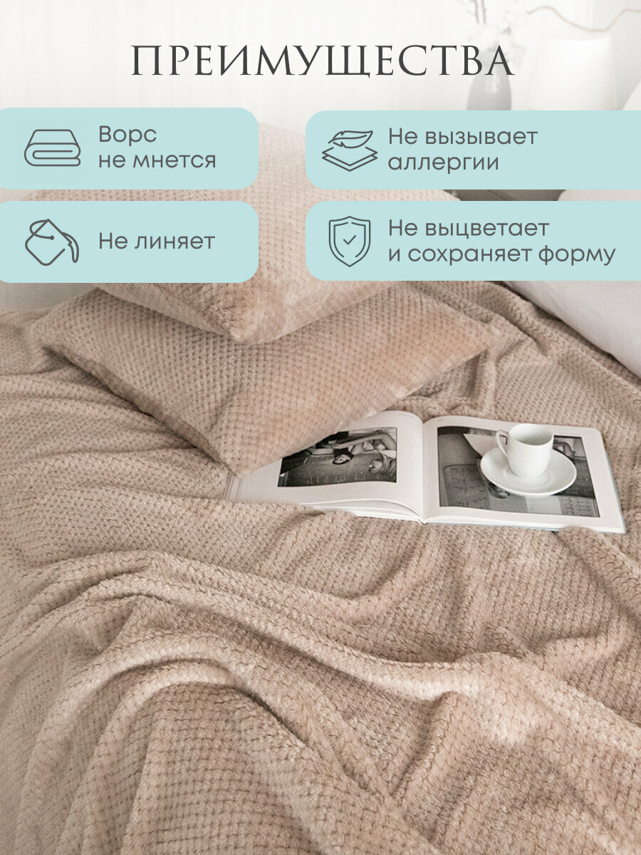Плед 220х240 на кровать диван пушистый покрывало, Tessolo Home, "Волна ", бежевый
