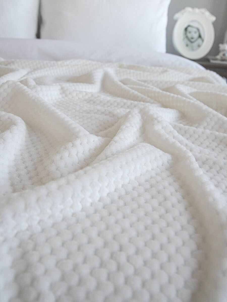 СохранитьПокрывало 240х260 на кровать диван плюшевое плед, "Жаккард", молочный белый интересное:
