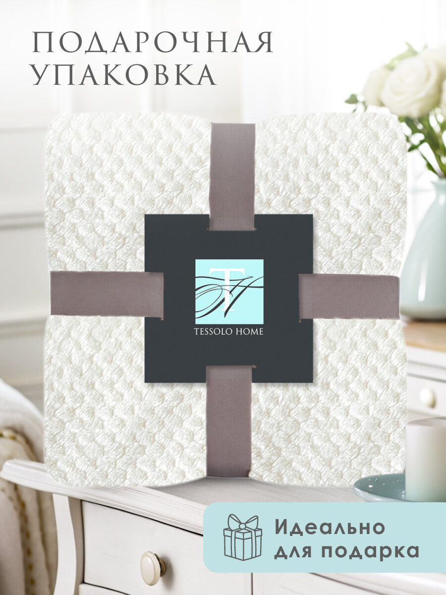 Плед 220х240 на кровать диван пушистый покрывало , Tessolo Home, "Жаккард", молочный, белый