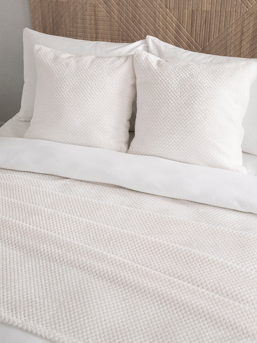 Купить Покрывало 240х260 на кровать диван плюшевое плед, "Жаккард", молочный белый