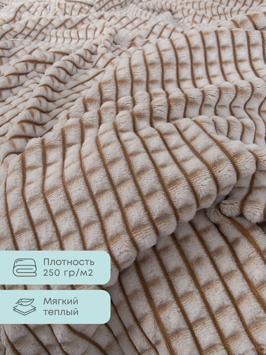 Плед 220х240 на кровать диван пушистый покрывало, Tessolo Home, "Волна ", бежевый