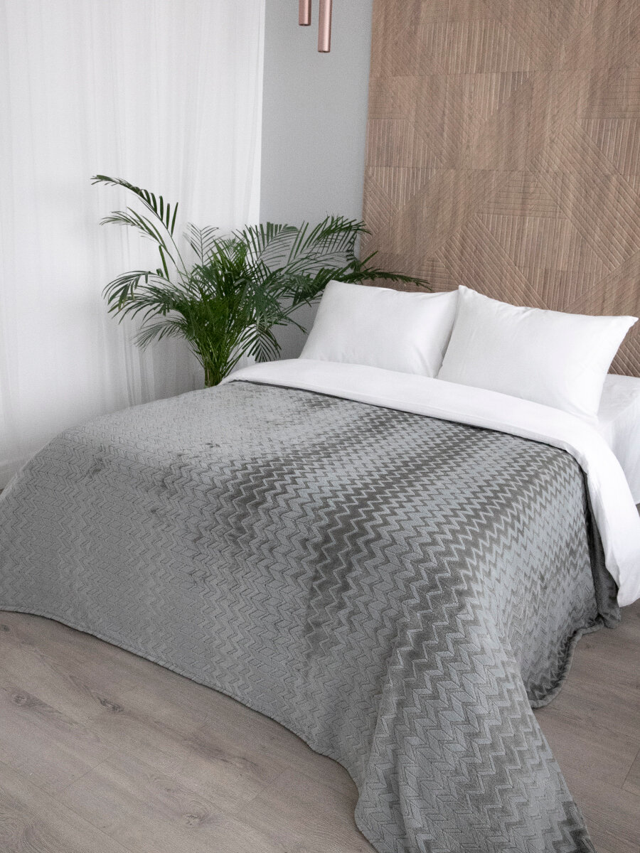 Купить Плед 220х240, Tessolo Home, на кровать диван пушистый покрывало, "Зигзаг", серый