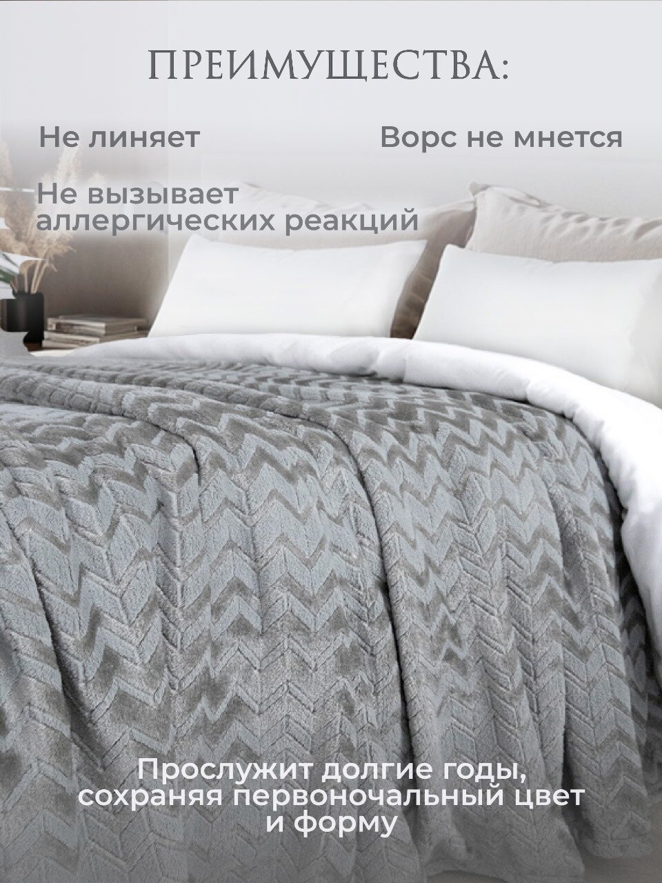 Плед покрывало 220х240 на кровать плюшевый и теплый "Жаккард"