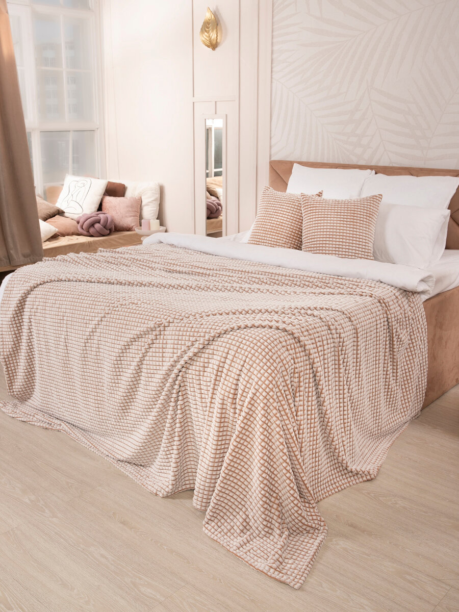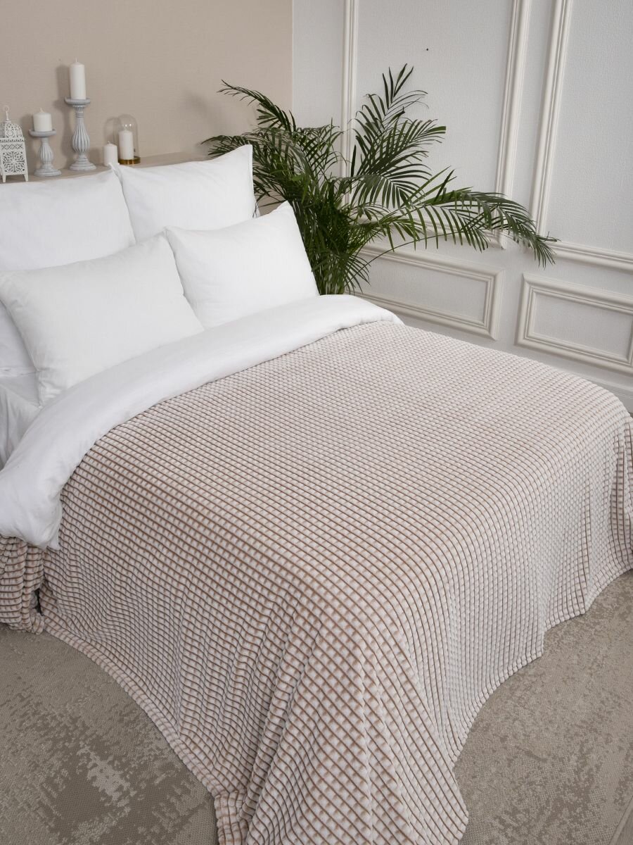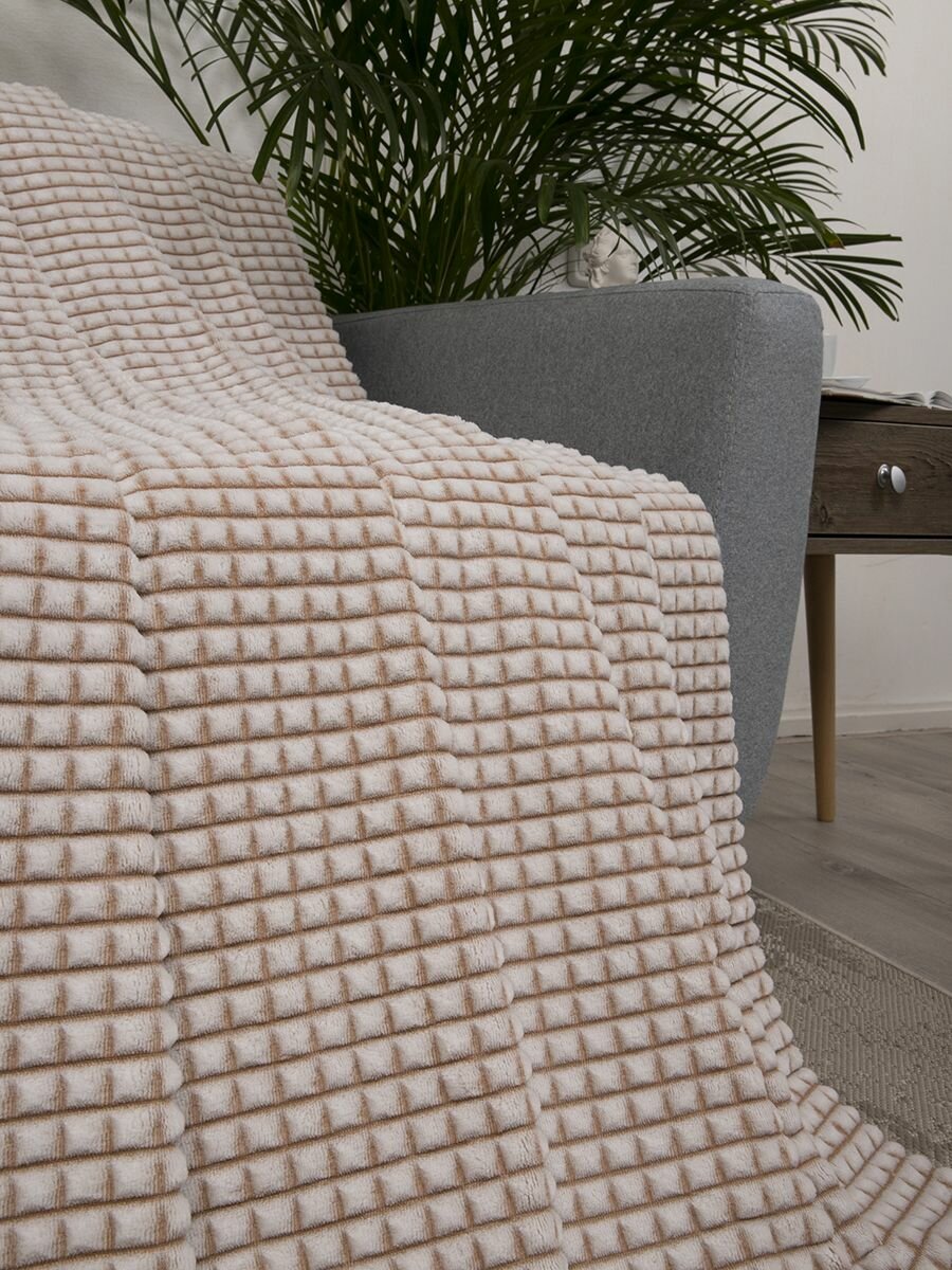 Покрывало 240х260 на кровать диван плюшевое плед, Tessolo Home, "Кубики", песочный, бежевый