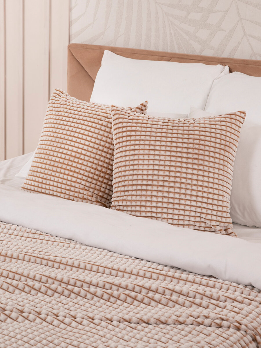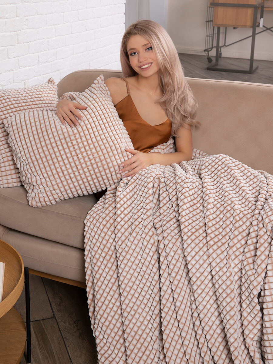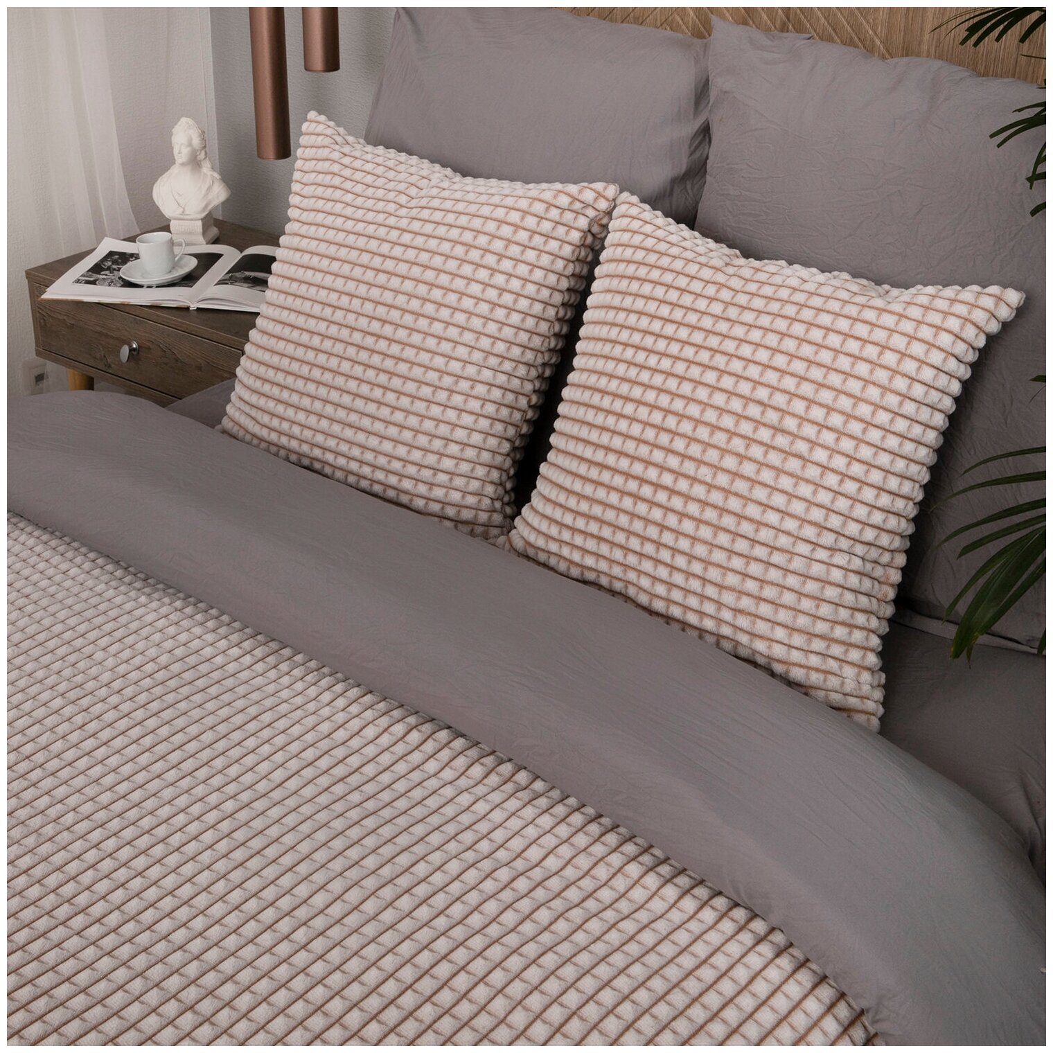 Покрывало 240х260 на кровать диван плюшевое плед, Tessolo Home, "Кубики", песочный, бежевый