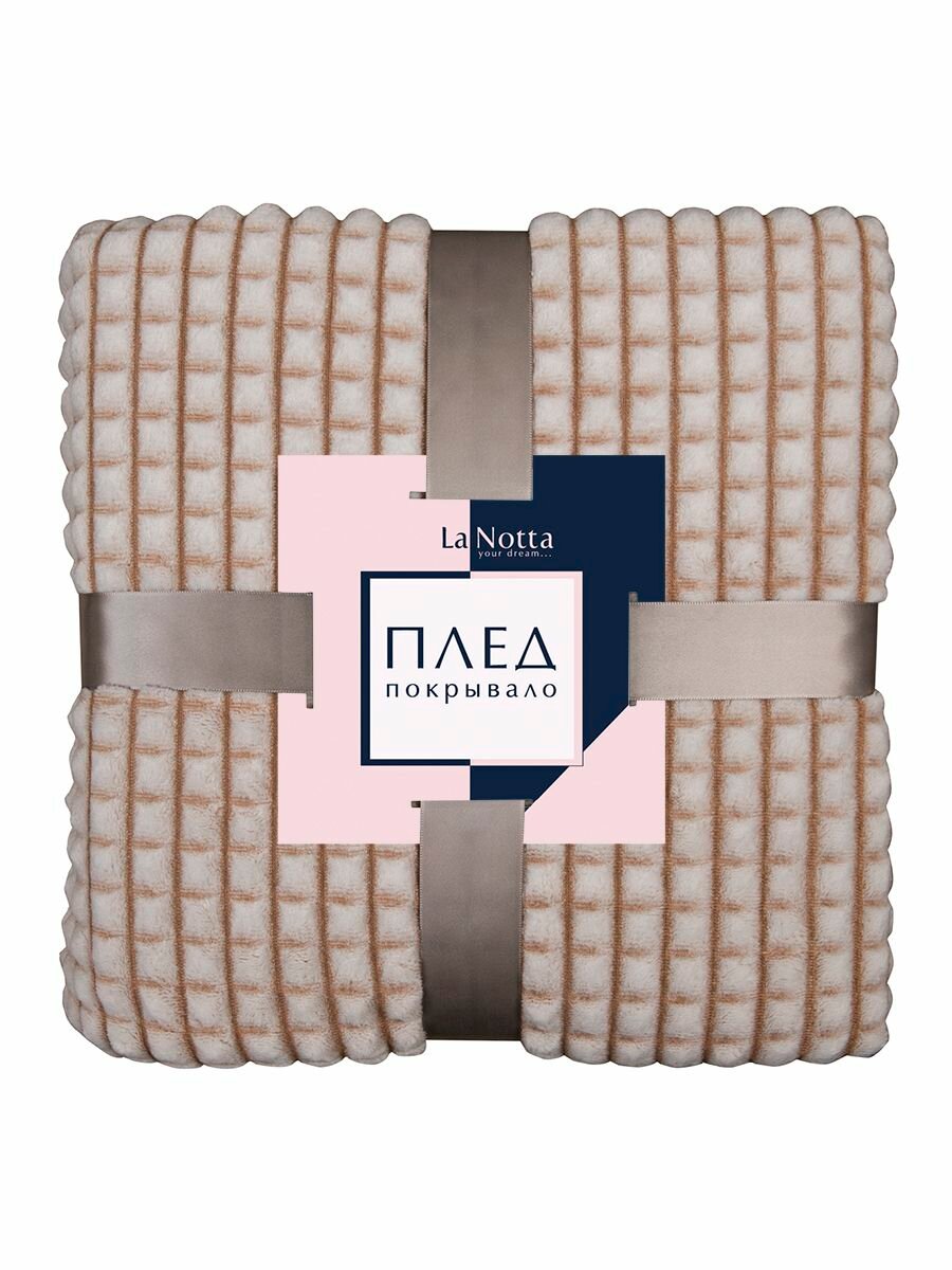 Плед 220х240 на кровать диван пушистый покрывало, Tessolo Home, "Волна ", бежевый
