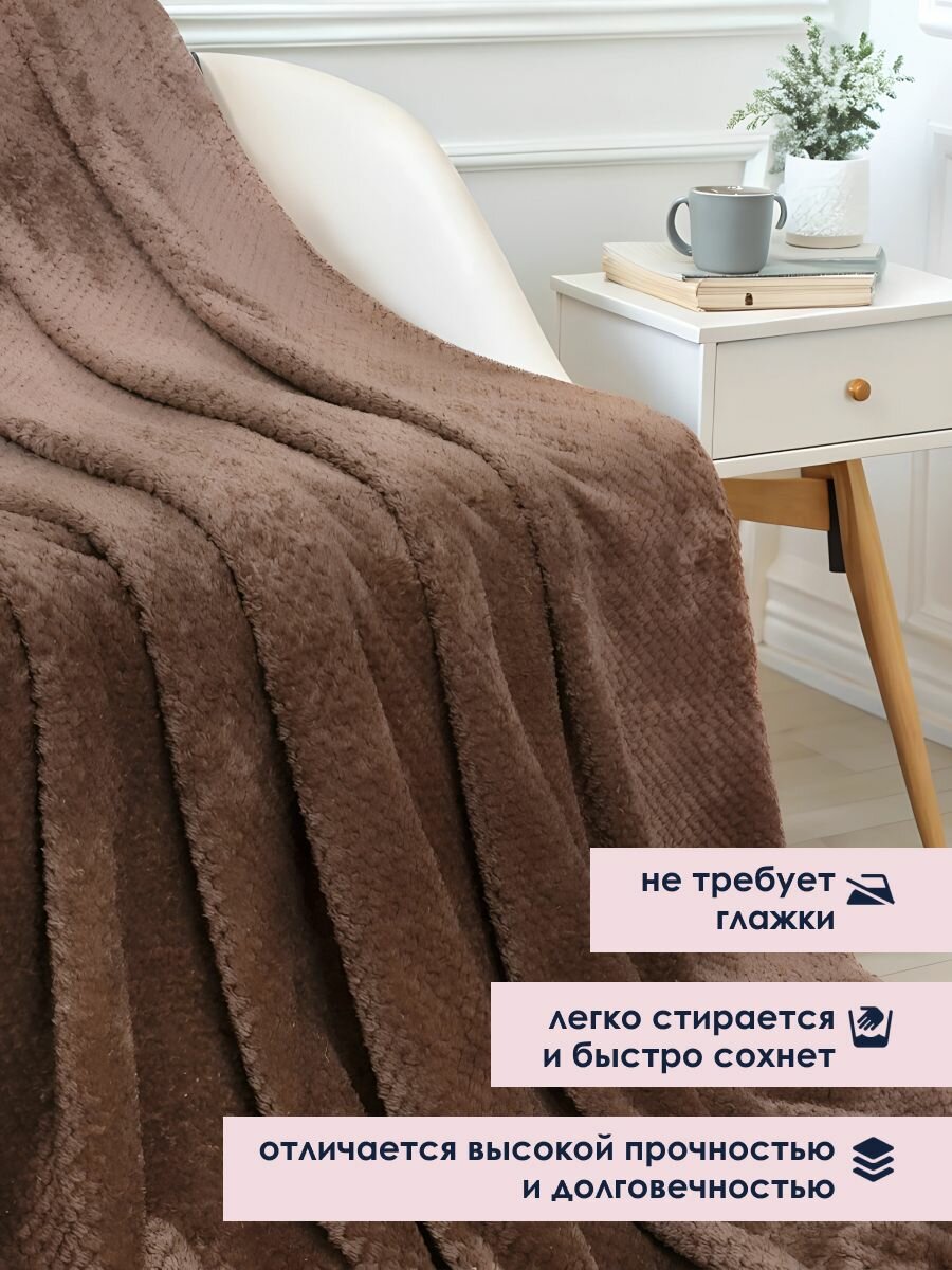 Плед 220х240 на кровать диван пушистый покрывало, микровелюр Жаккард, Tessolo Home, коричневый