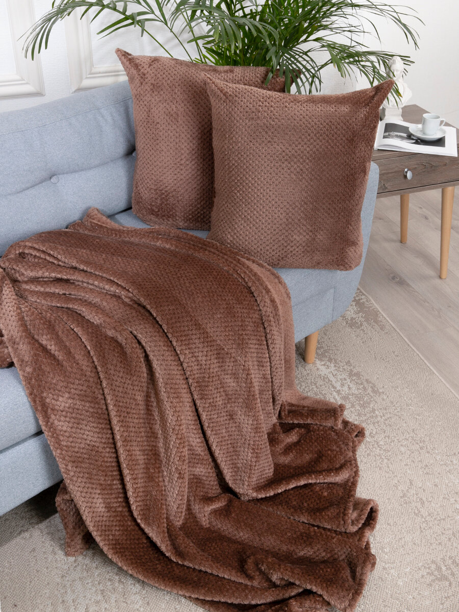 Покрывало 240х260 на кровать диван плюшевое плед, Tessolo Home, "Кубики", шоколад, коричневый