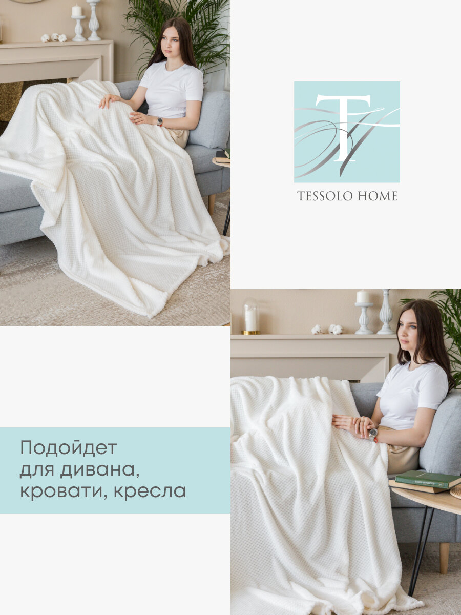 Купить Плед 220х240 на кровать диван пушистый покрывало , Tessolo Home, "Жаккард", молочный, белый
