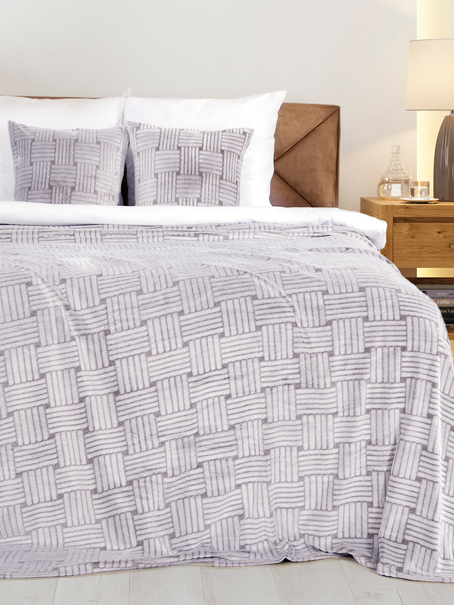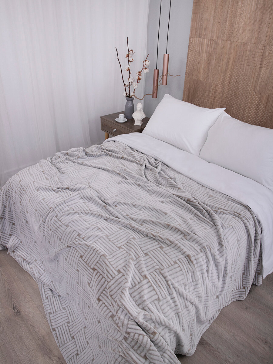 Плед на кровать евро 220х240 см плюшевый и мягкий "Жаккард"