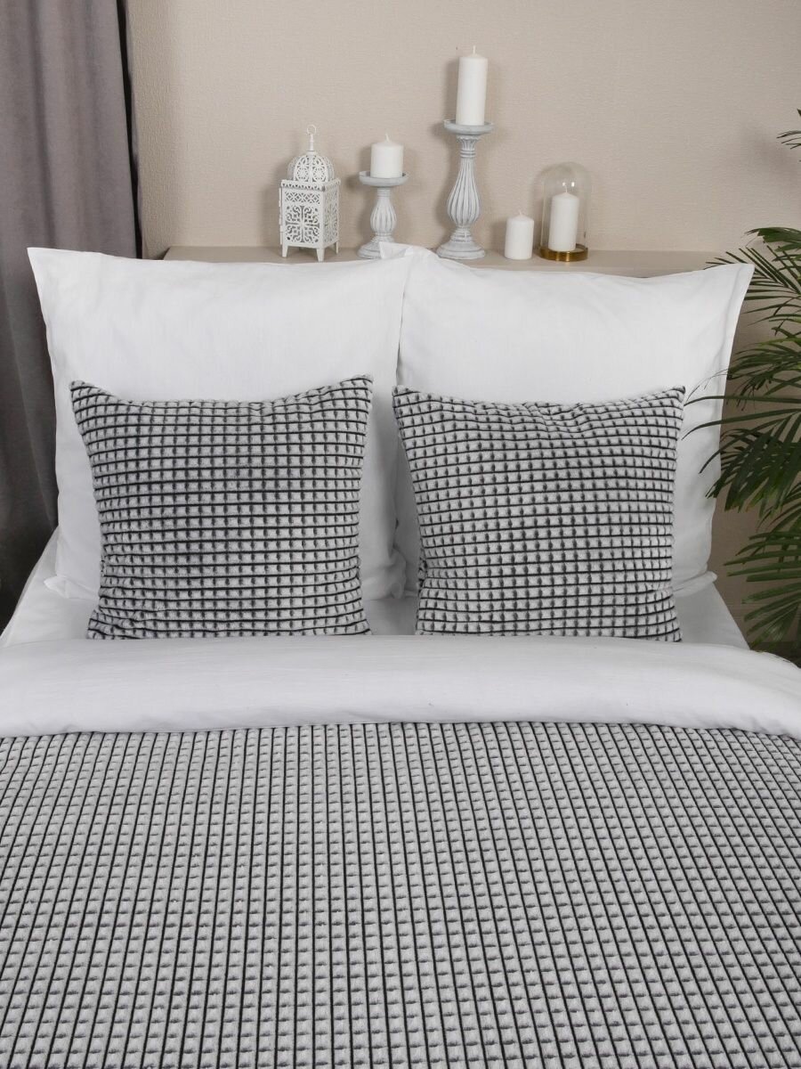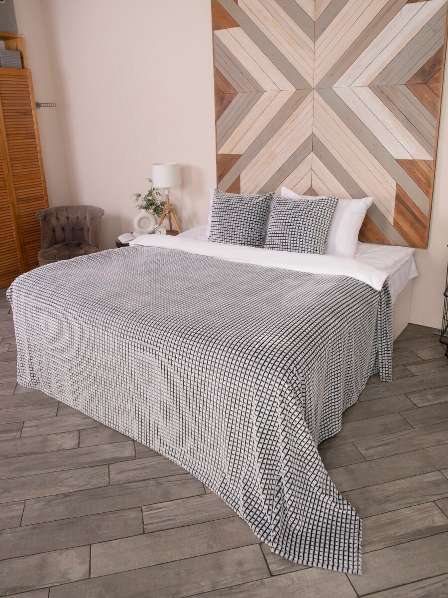 Покрывало 240х260 на кровать диван плюшевое плед, Tessolo Home, "Кубики", графитовый, серый
