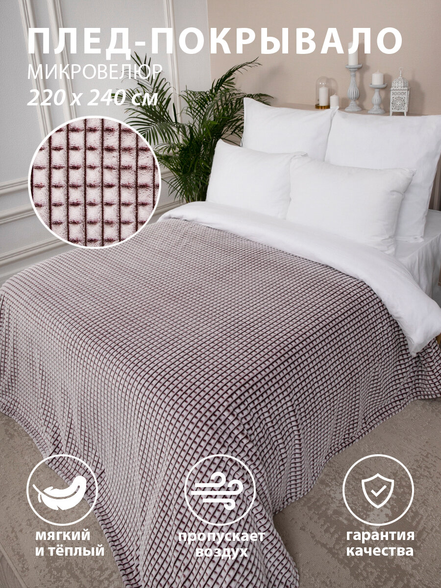 Плед на кровать евро 220х240 см велюровый "Ромб"