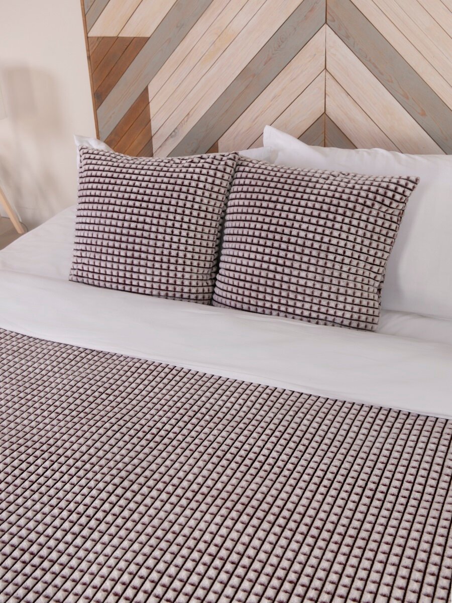 Покрывало 240х260 на кровать диван плюшевое плед, Tessolo Home, "Кубики", шоколад, коричневый