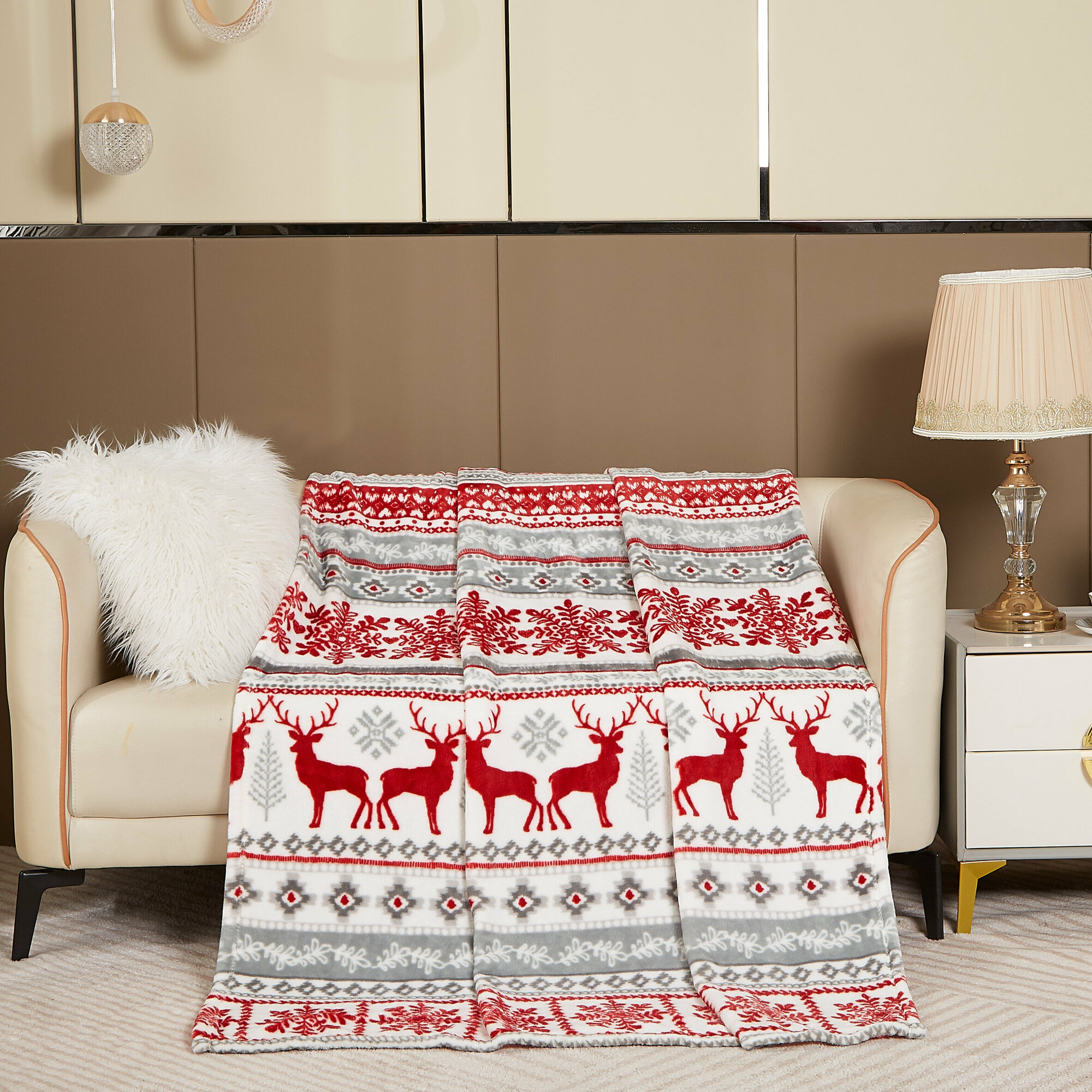 Купить Плед 150x200 Покрывало37 пушистый скандинавский новогодний с оленями