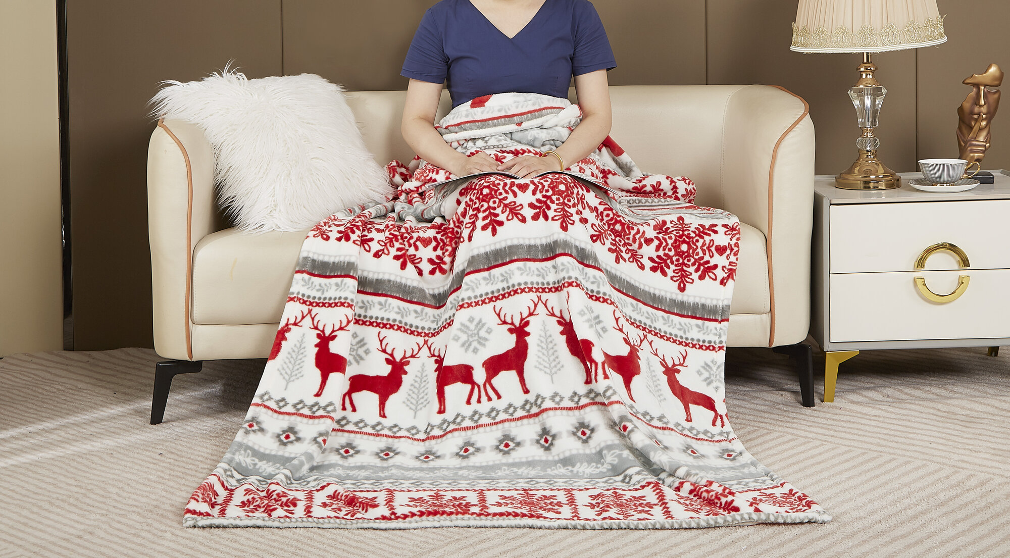 Плед 150x200 Покрывало37 пушистый скандинавский новогодний с оленями интересное: