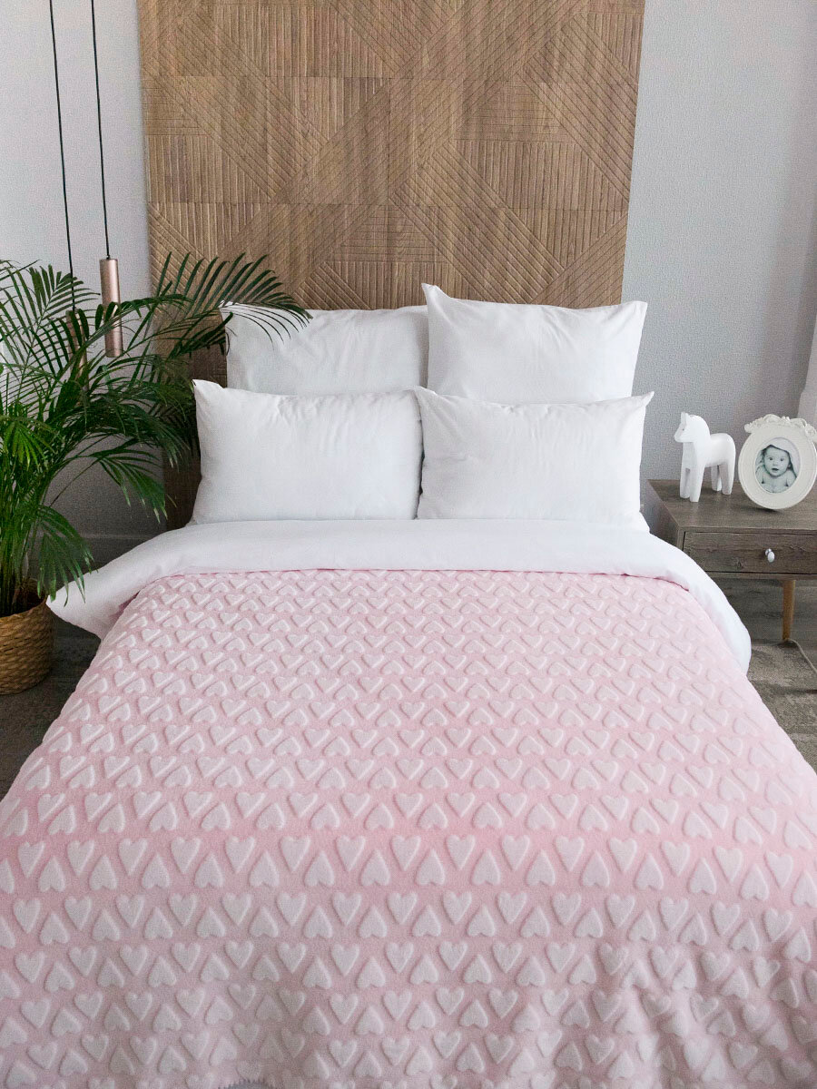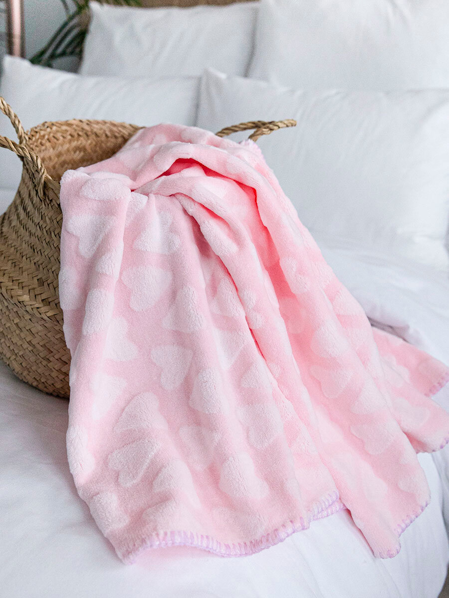 Купить Плед 150х200 детский пушистый, Tessolo Home, на кровать, "Сердечки", розовый