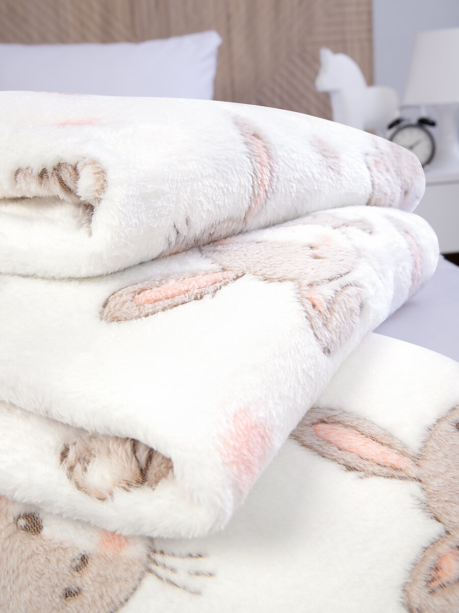 СохранитьПлед 150х200 детский, Tessolo Home, пушистый на кровать, Зайки на белом интересное: