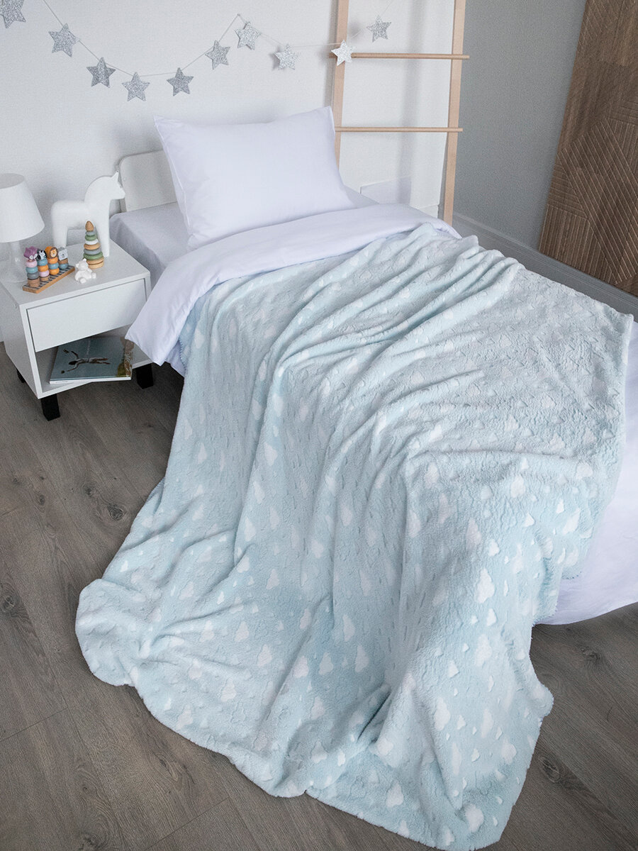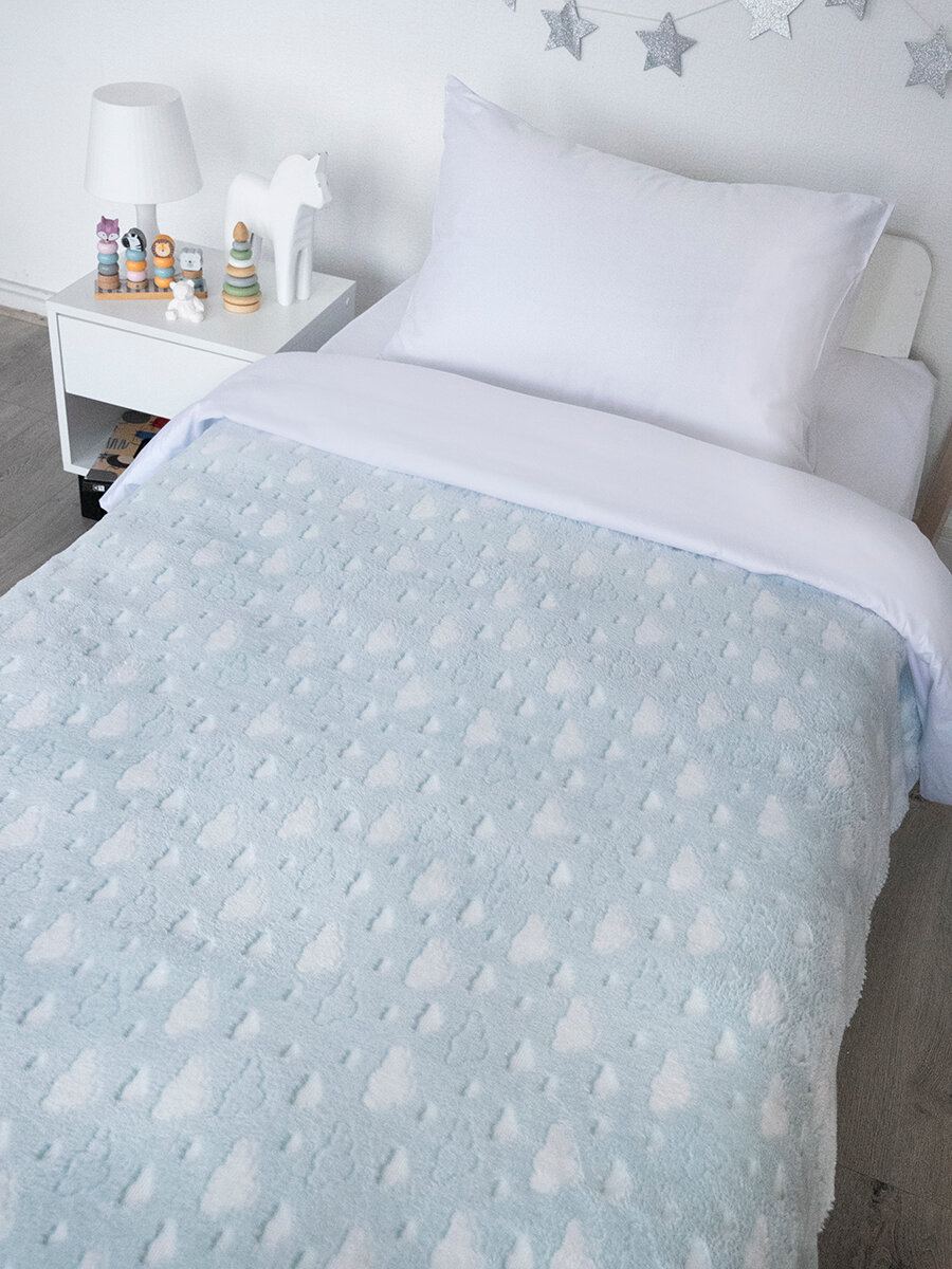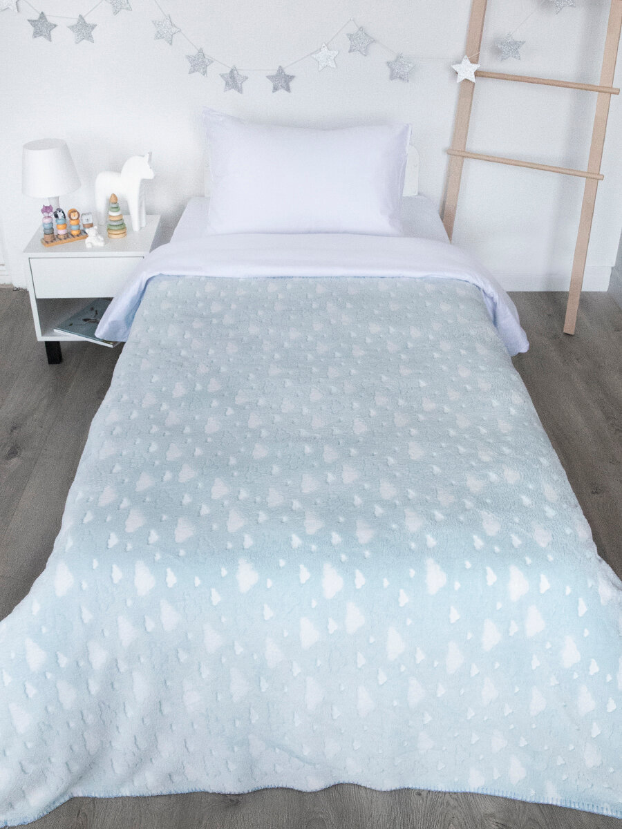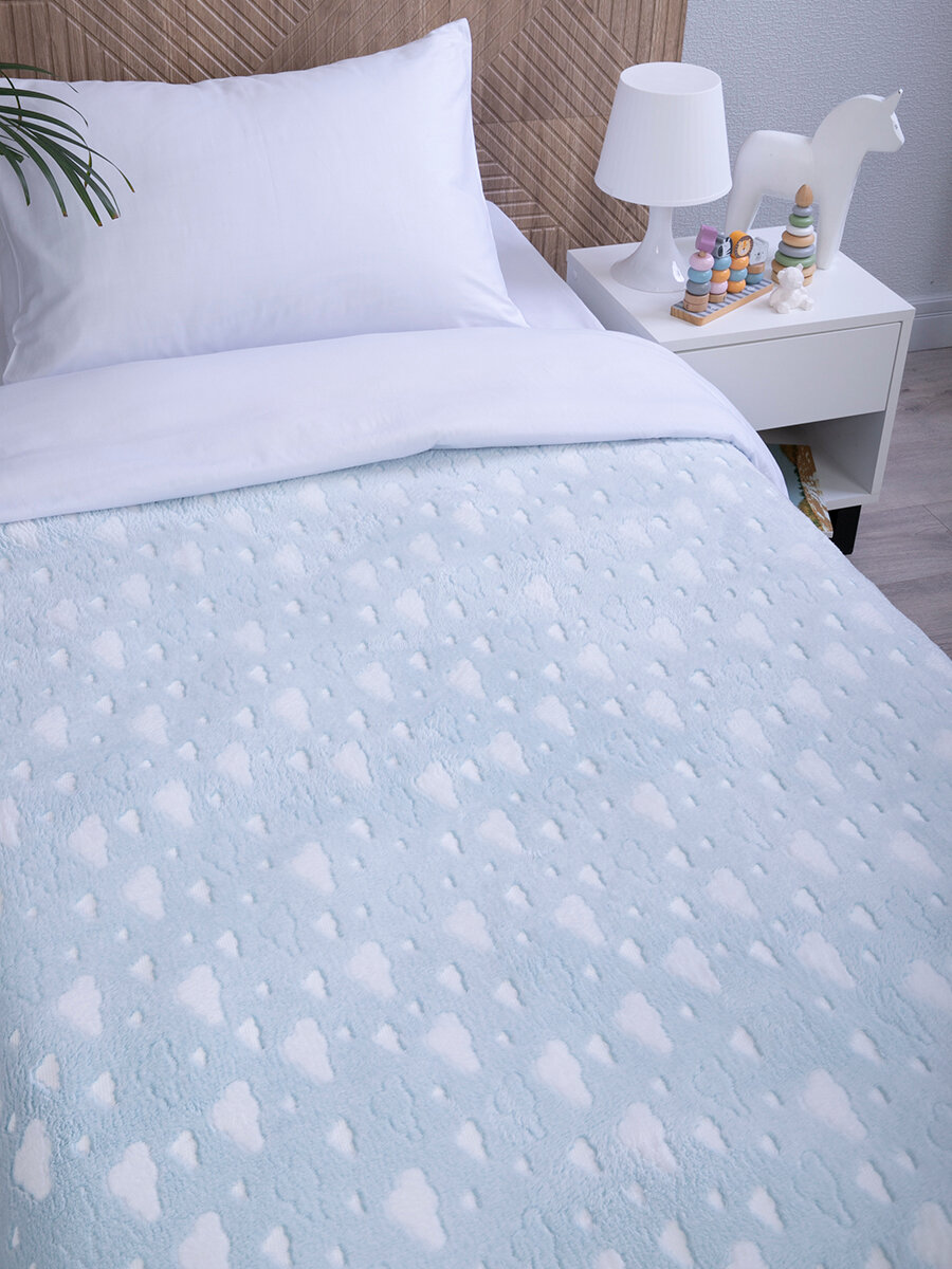 Купить Плед 150х200, Tessolo Home, на кровать детский пушистый "Облака", голубой