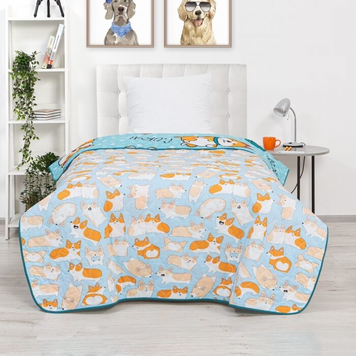 СохранитьПокрывало Подростковое «Рыжик» из поплина 150х215 стеганое Корги интересное:
