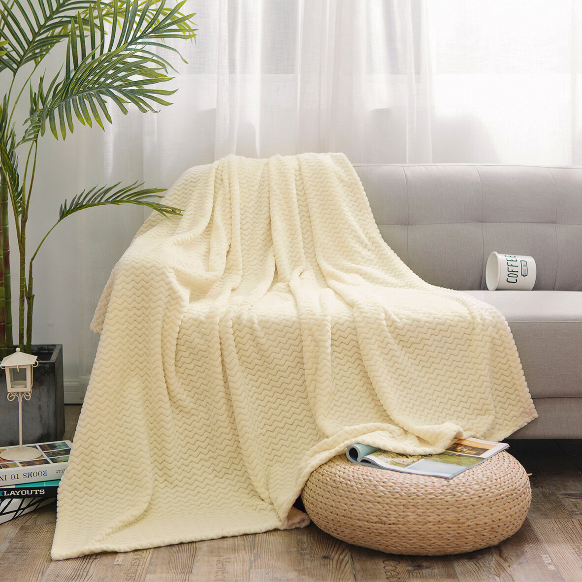 Плед из велсофта Royal plush 014-RP Cleo (кремовый), 180x200