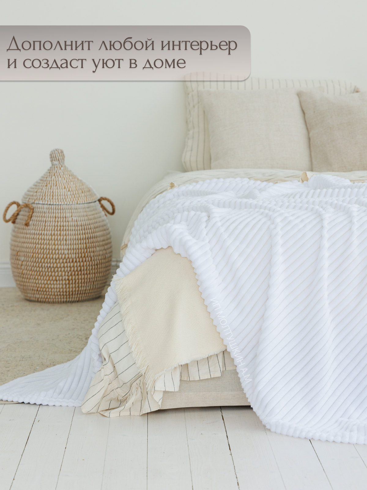 Плед белый Hotlo 150х200 покрывало на диван и кровать