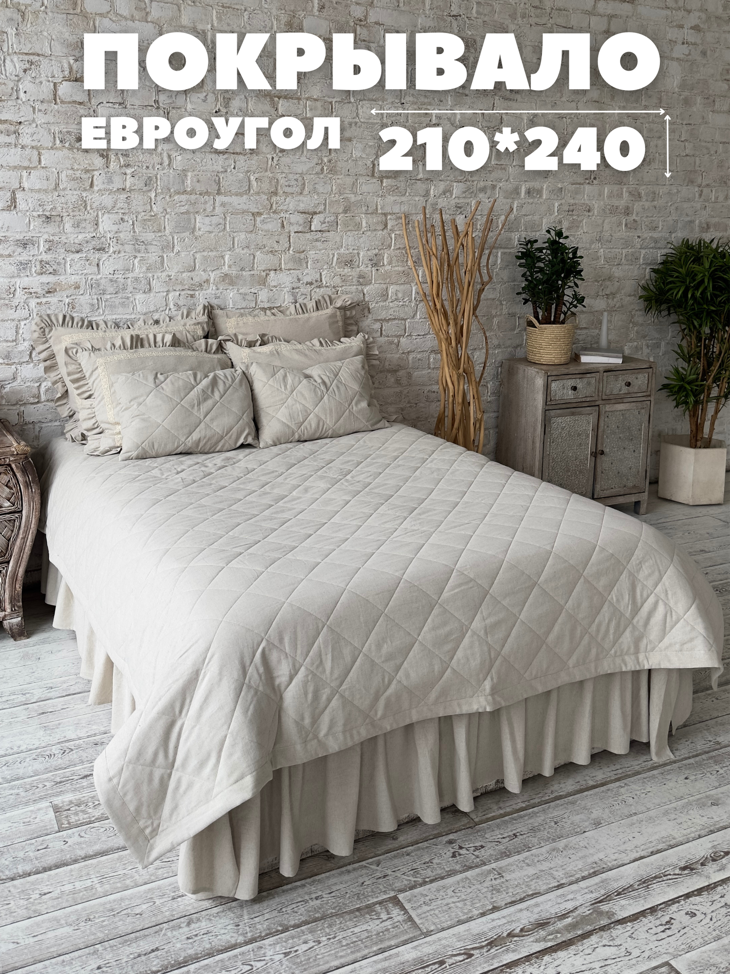 Покрывало "Home Flax", двустороннее, стеганное, евроугол, неокрашенный лен, 240 см x 210 см интересное: