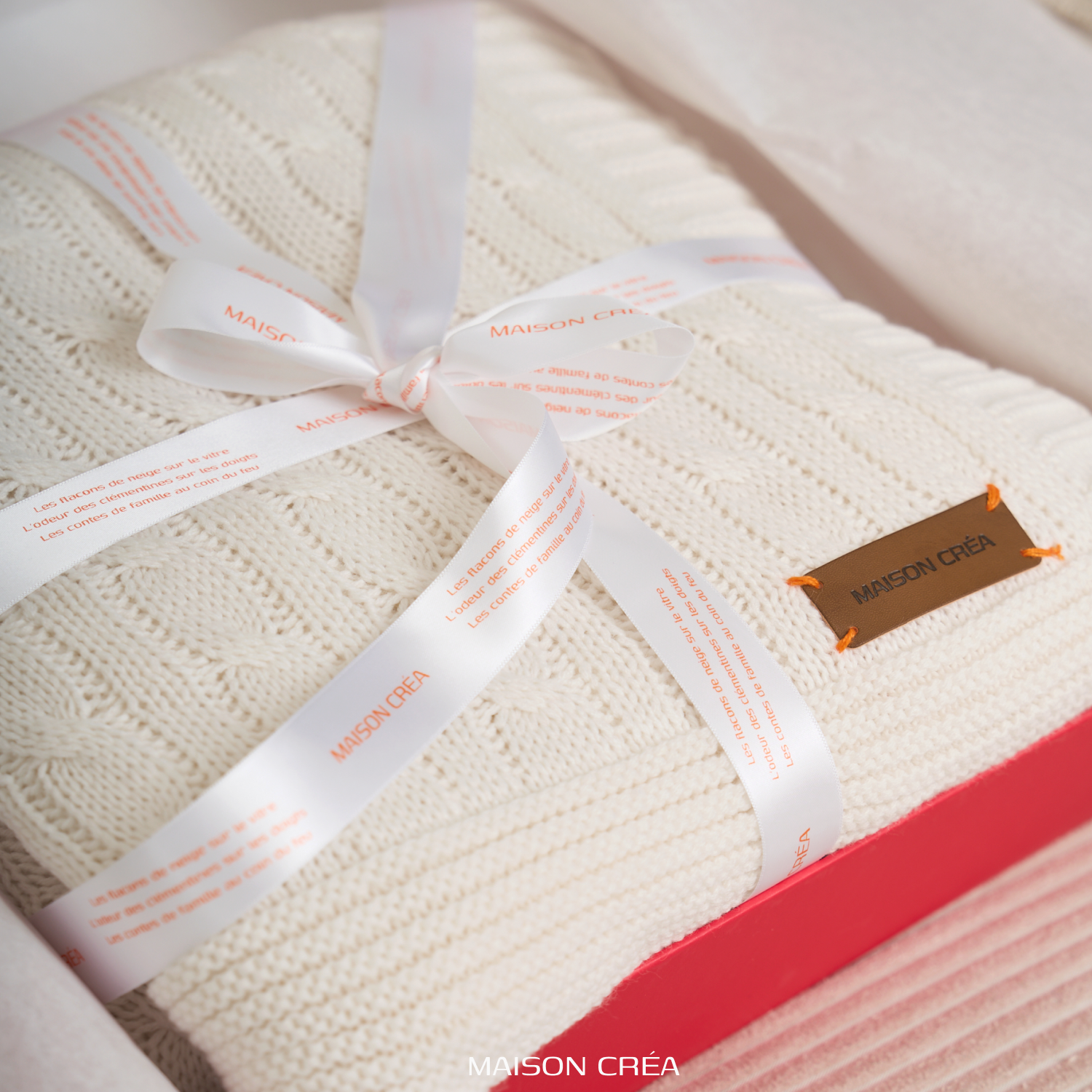 Плед вязаный Maison Crea "Косы", гипоаллергенный акрил, мягкий и теплый, в подарочной упаковке, 130х170