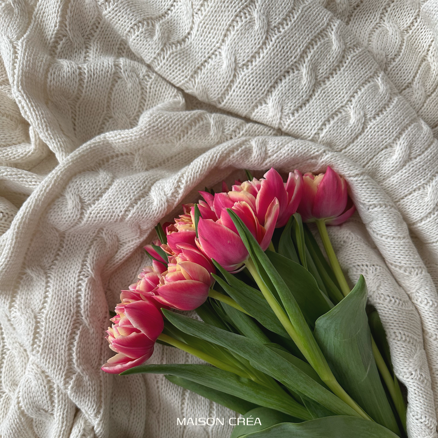 Купить Плед вязаный Maison Crea "Косы", гипоаллергенный акрил, мягкий и теплый, в подарочной упаковке, 130х170