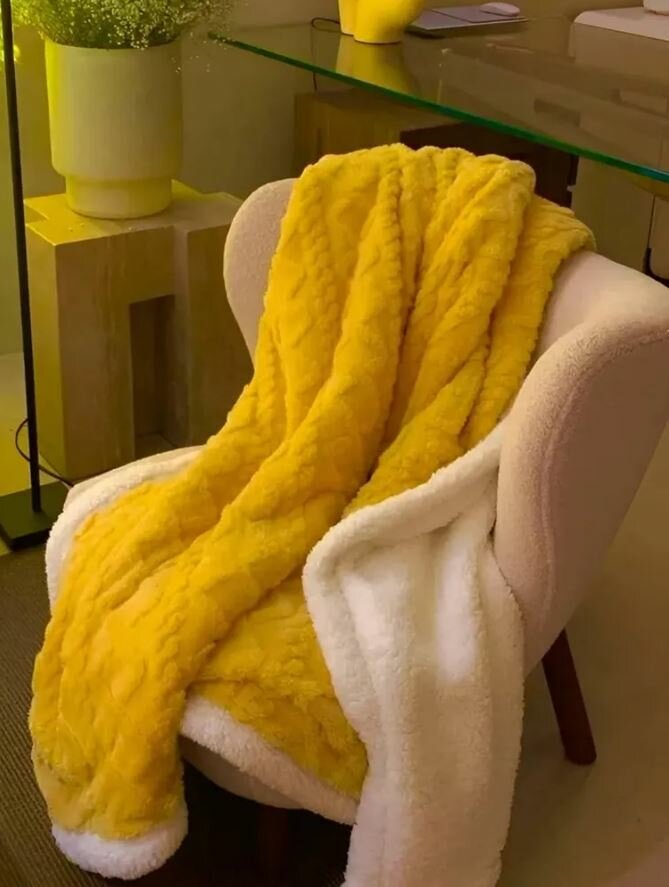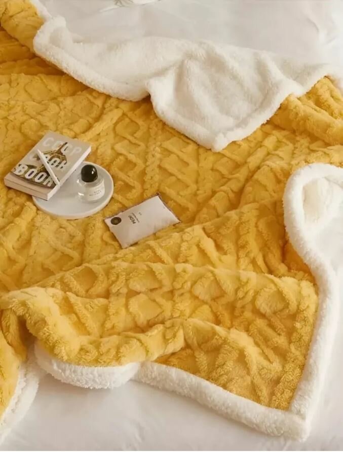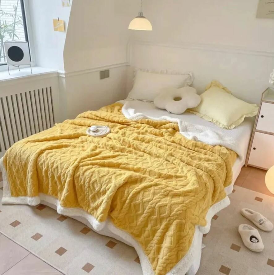 Плед 200*230 Евро - Желтый, Плед Овечка, Плед плюшевый, плед - одеяло, плед для дивана, Покрывало на кровать интересное: