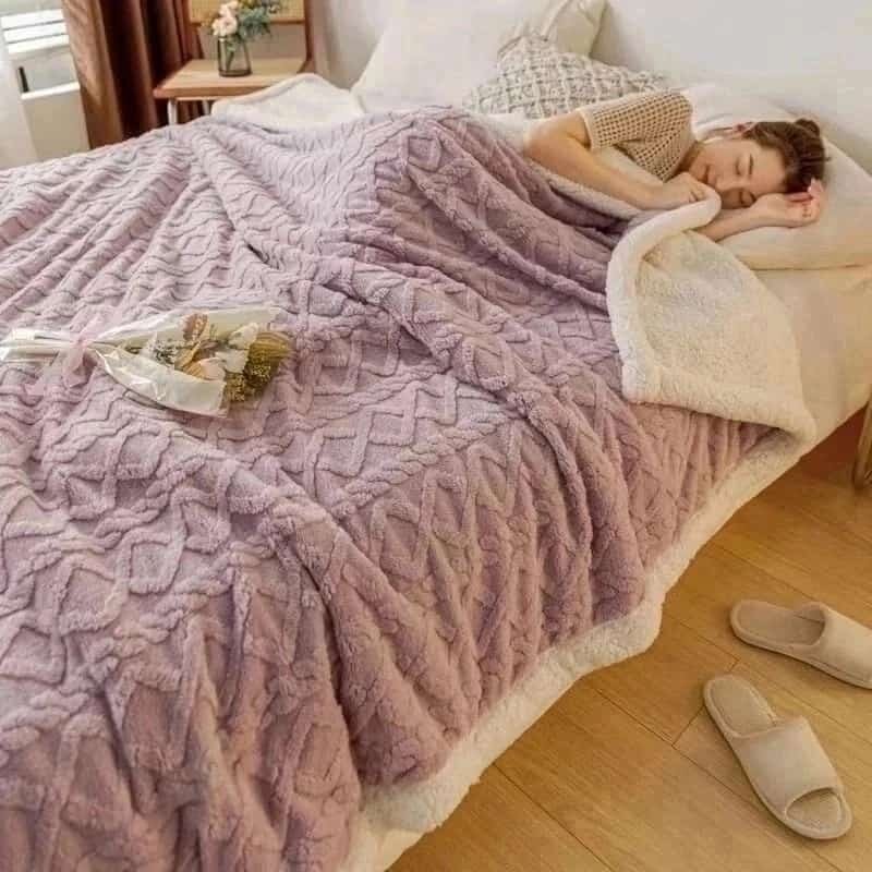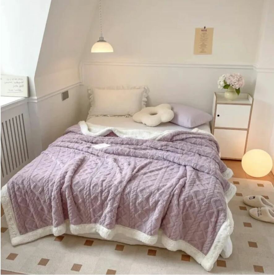Купить Плед на кровать из овечьей шерсти / 3в1 - плед, покрывало, одеяло/ 200х230 - Сиреневый / Плед на кровать / Плед на диван