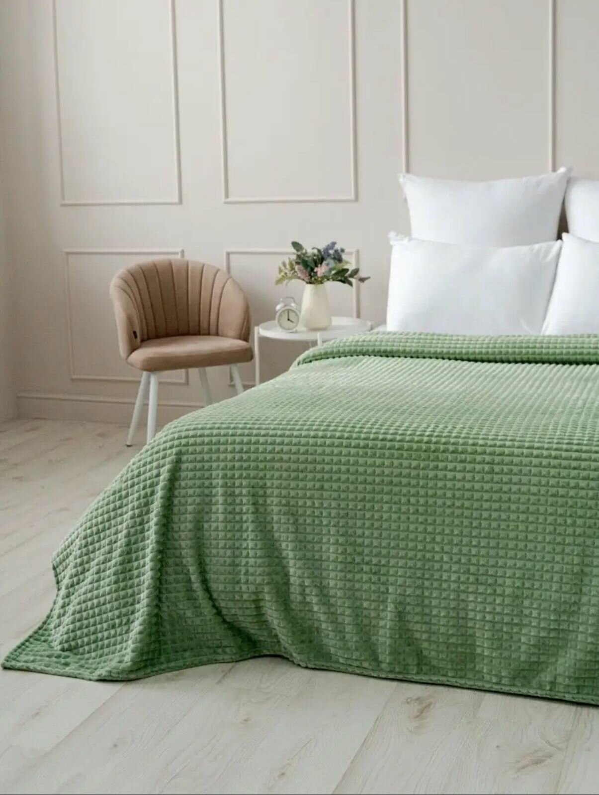 Купить Плед евро 200х220 см велсофт покрывало на кровать зеленый