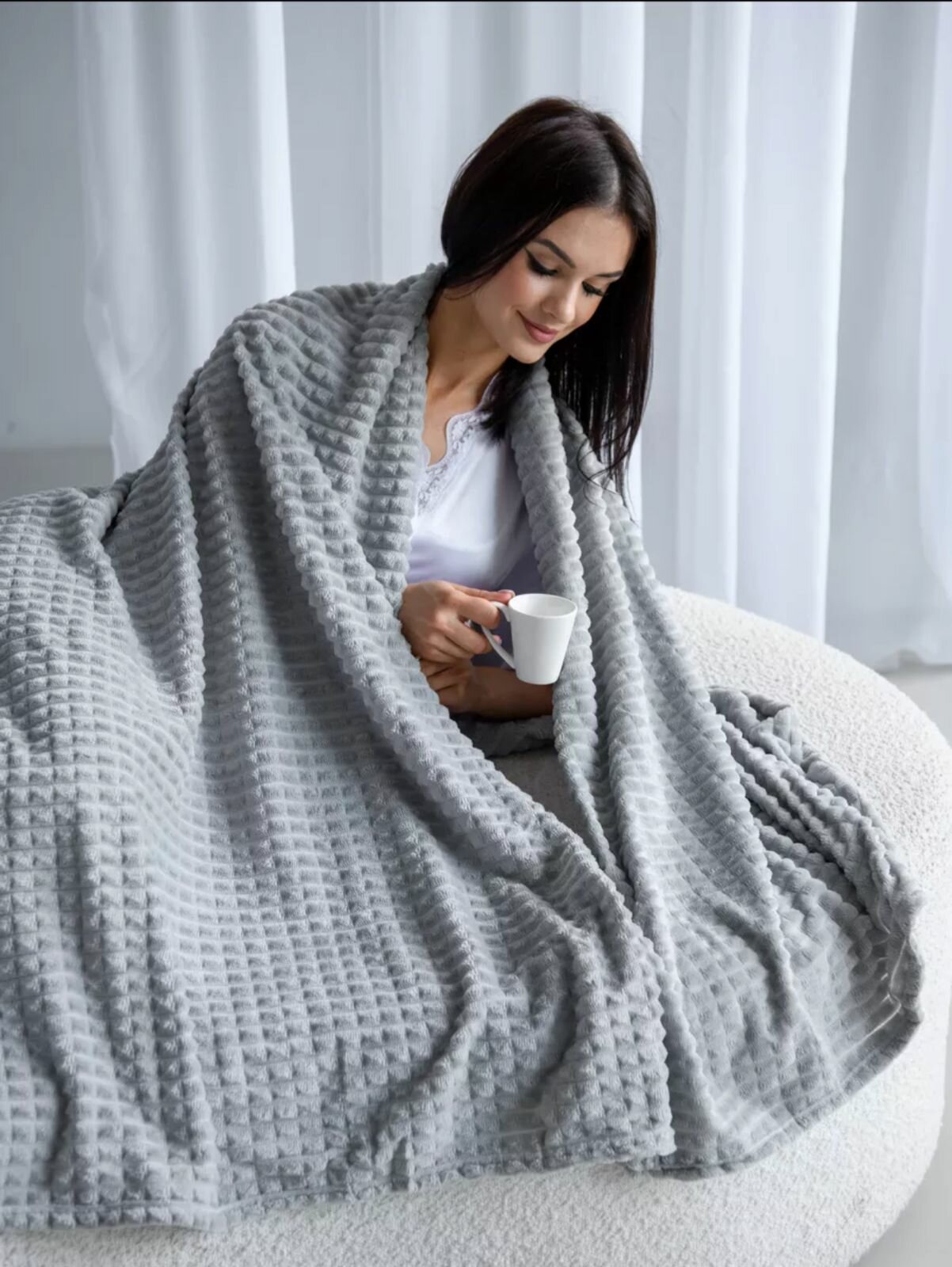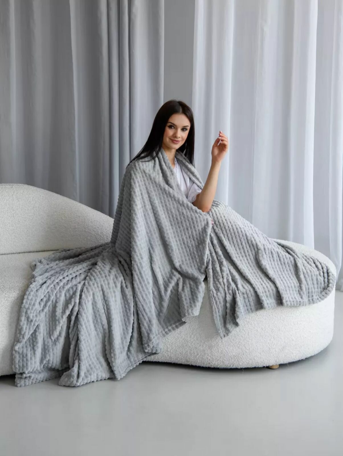 Плед евро 200х220 см велсофт покрывало на кровать белый