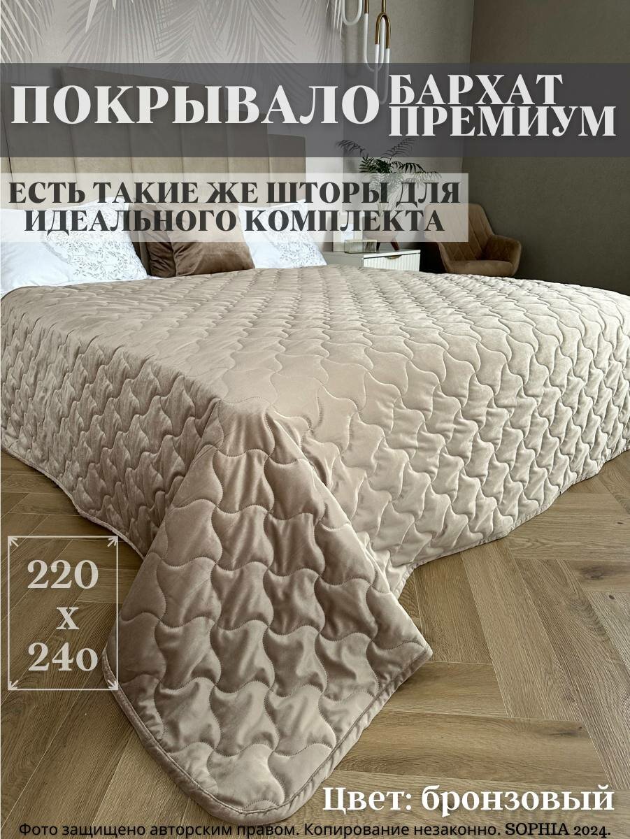 Купить Бархатное покрывало SOPHIA, размер 240x220 см бронзового цвета