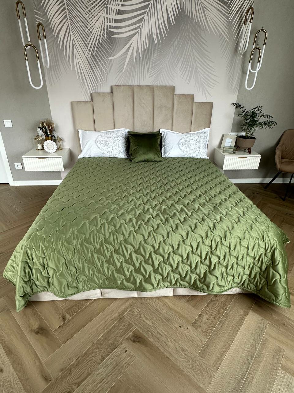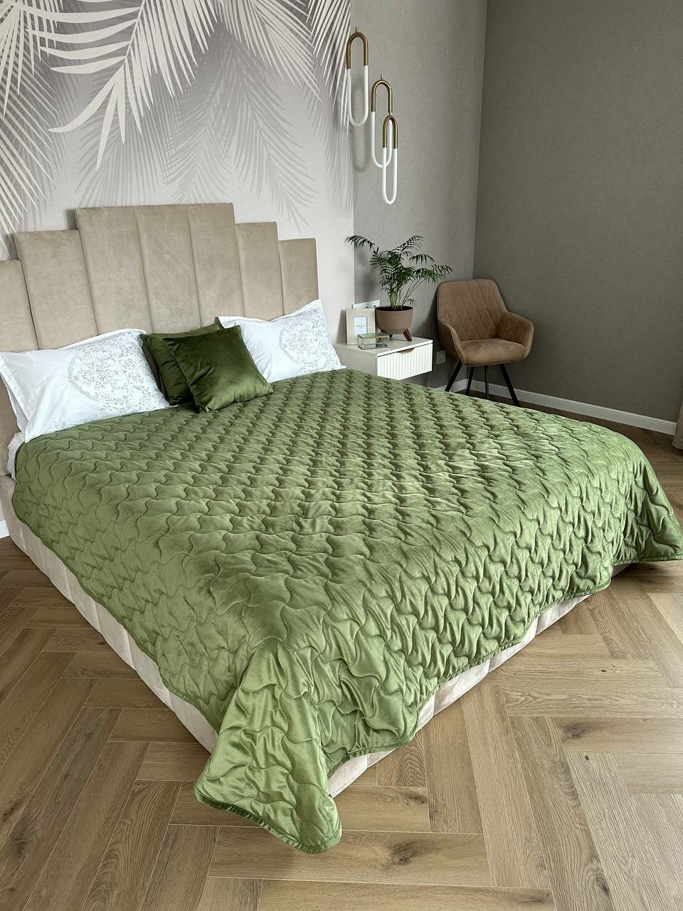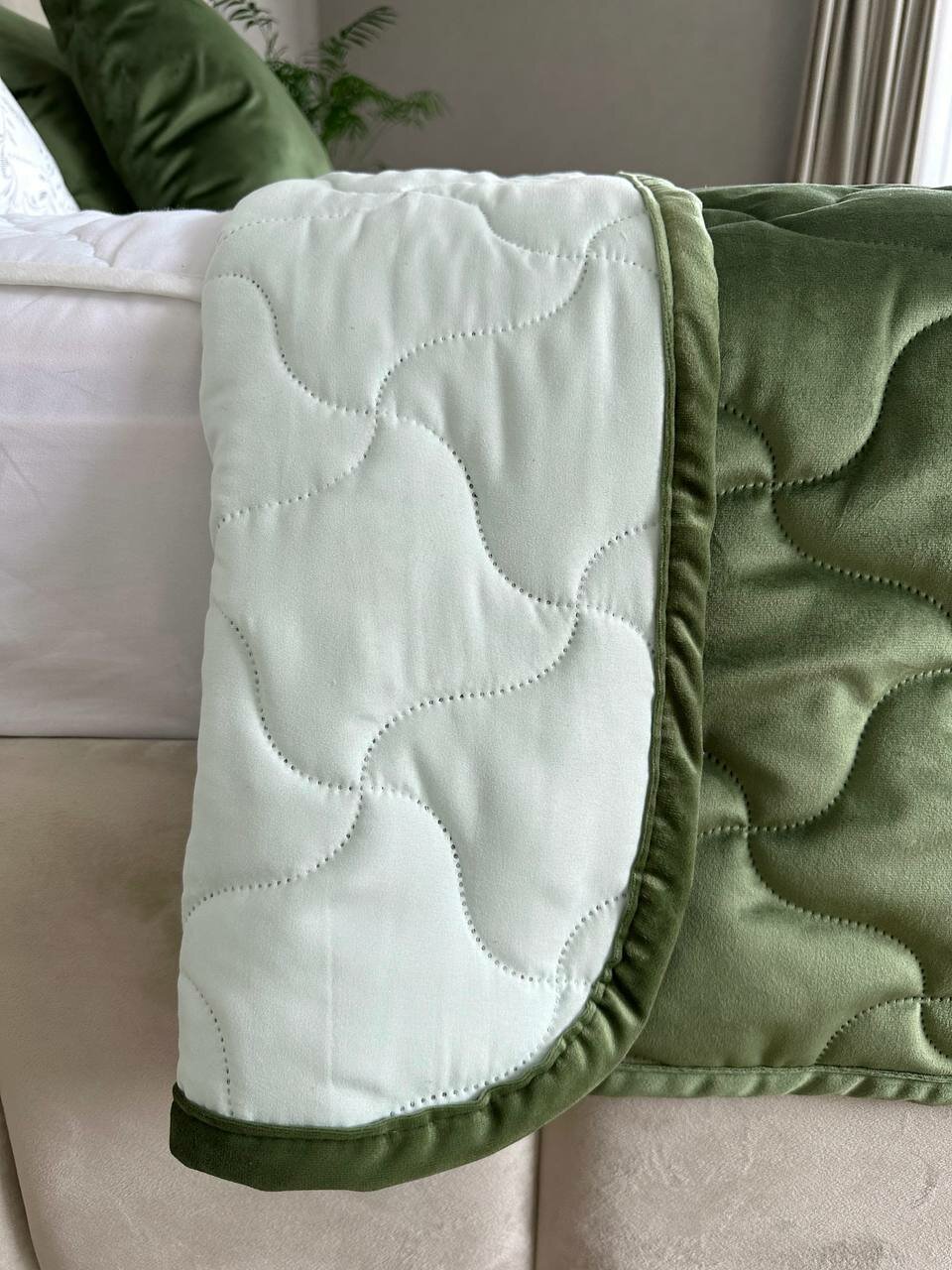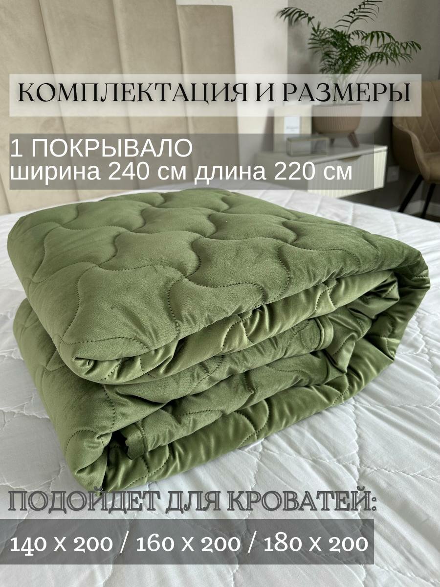Купить Бархатное покрывало SOPHIA, размер 240x220 см, цвет оливковый